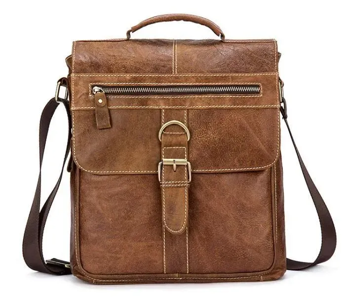 М'яка вінтажна шкіряна сумка для справжніх чоловіків. На сумці є ефект потертості, що надає їй колоритності. Модель прошита світлою ниткою по краях та доповнена золотистою фурнітурою. Шкіряна сумка прослужить вам набагато довше, ніж із замінника чи текстильна. А її зовнішній вигляд із потертостями виділить вас із натовпу. Аксесуар буде чудовим подарунком для будь-якого чоловіка. Сумка упакована в тканинний мішок від пилу та зносу.