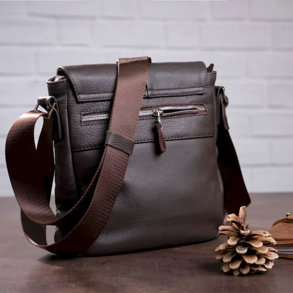 Очень красивая сумочка ручной работы коричневого цвета из натуральной кожи. Аксессуар выглядит элегантно и может с легкостью дополнить как мужской костюм, так и повседневный наряд.