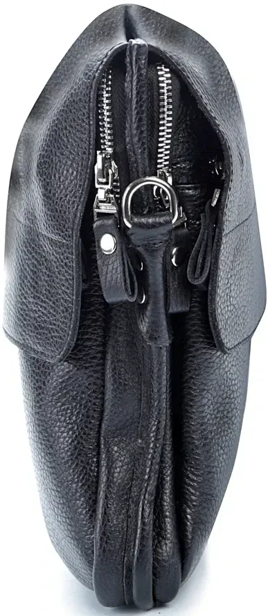 Сумочка с оригинальным дизайном, она поделена на три автономных отделения. Два отделения закрываются клапанами с магнитами, а под ними на молнию. Отделение которое находится между двумя основными, закрывается на магнитную защелку.