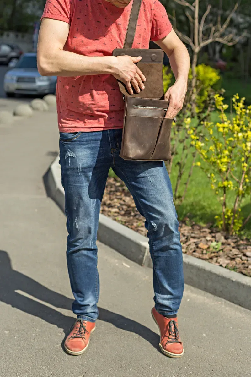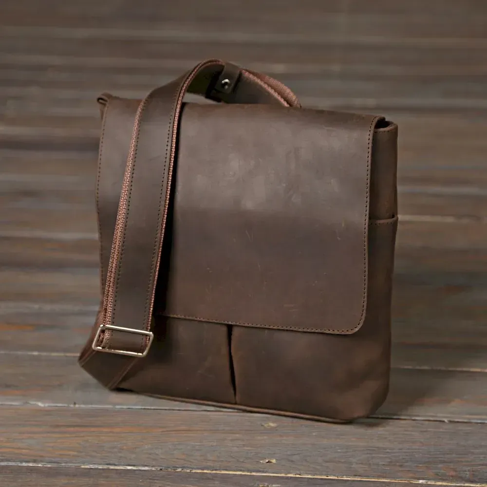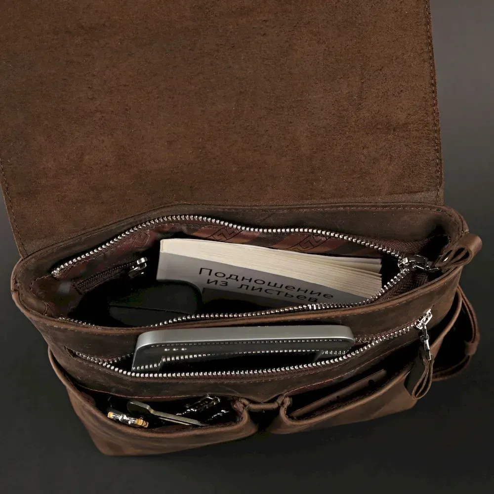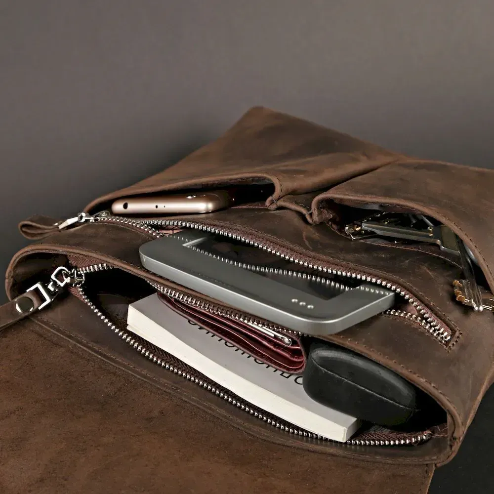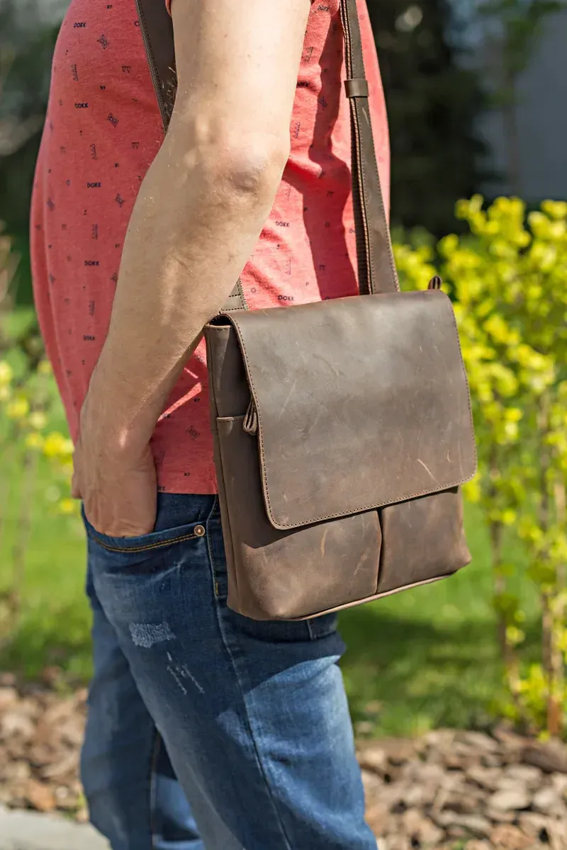 Сумка средних размеров из натуральной кожи для мужчин, которые ежедневно носят с собой много мелких вещей (ключи, телефон, блокнот, портмоне, небольшой планшет, и т.д.).