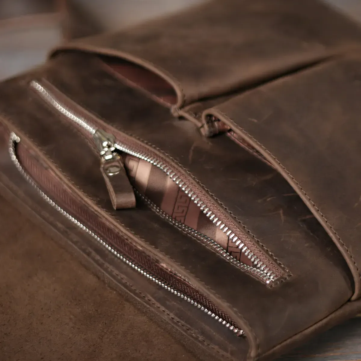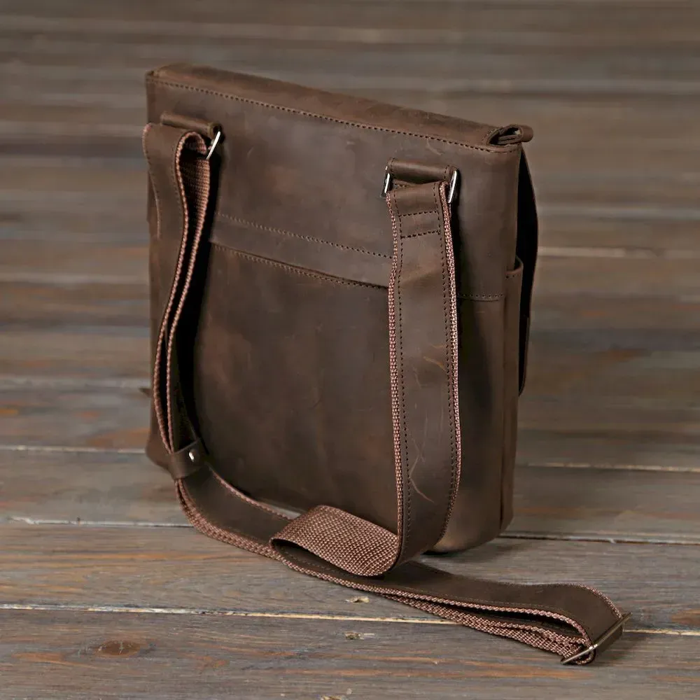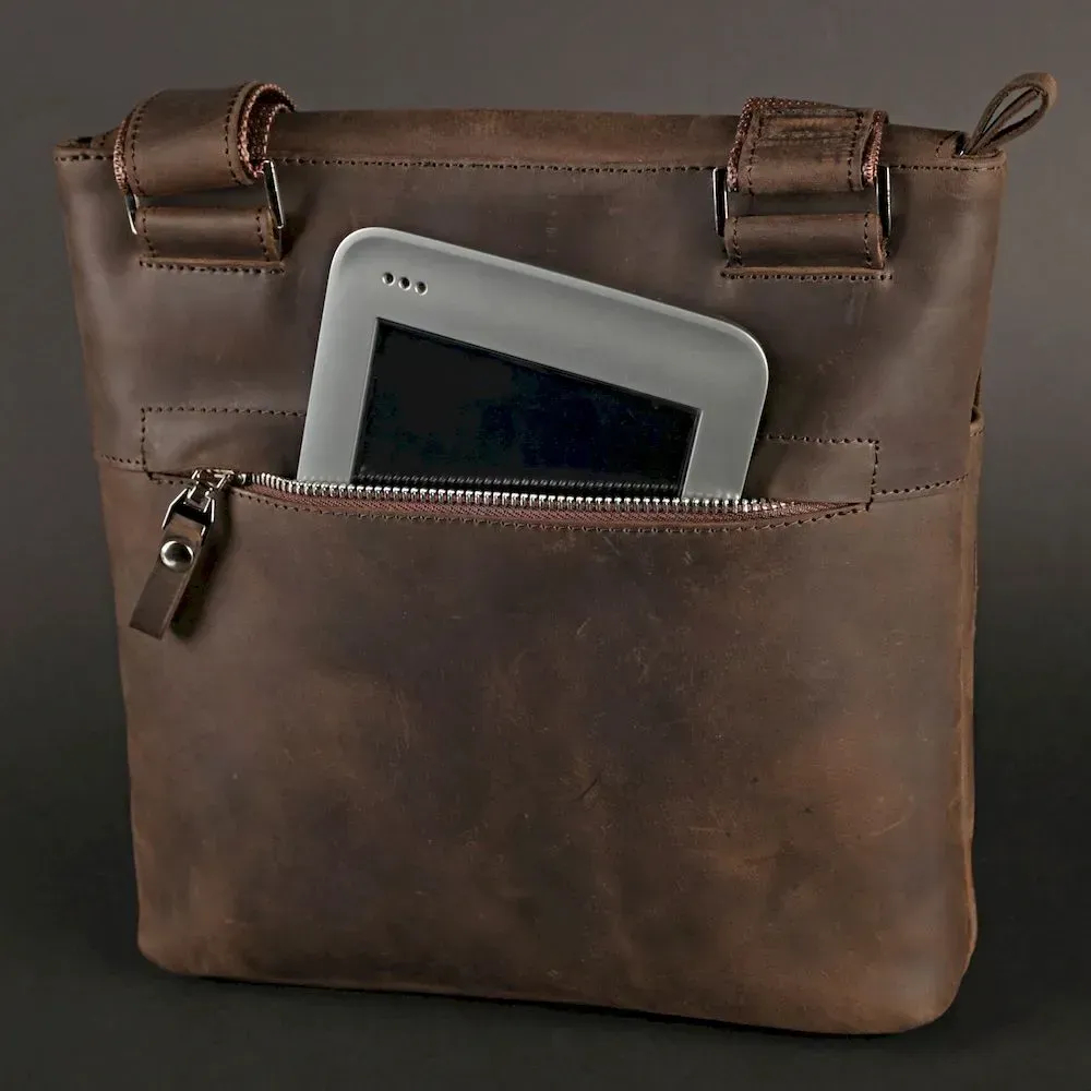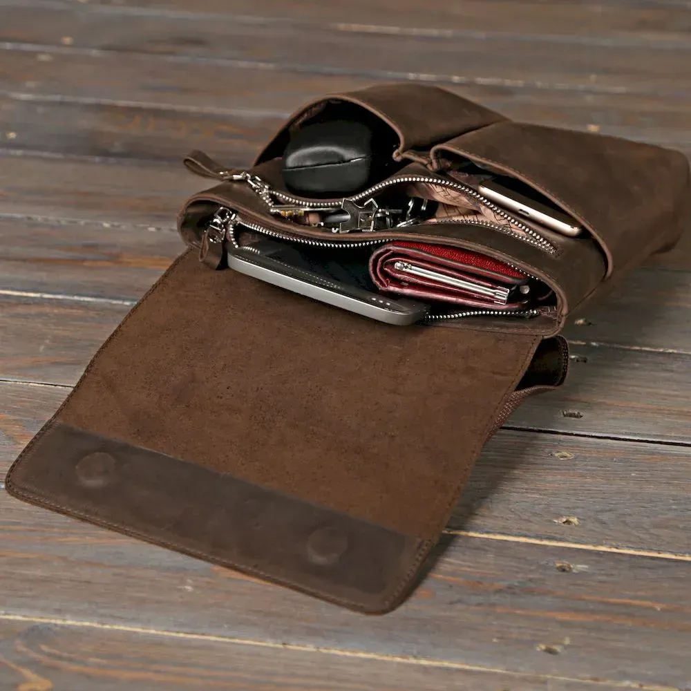 Сумка средних размеров из натуральной кожи для мужчин, которые ежедневно носят с собой много мелких вещей (ключи, телефон, блокнот, портмоне, небольшой планшет, и т.д.).