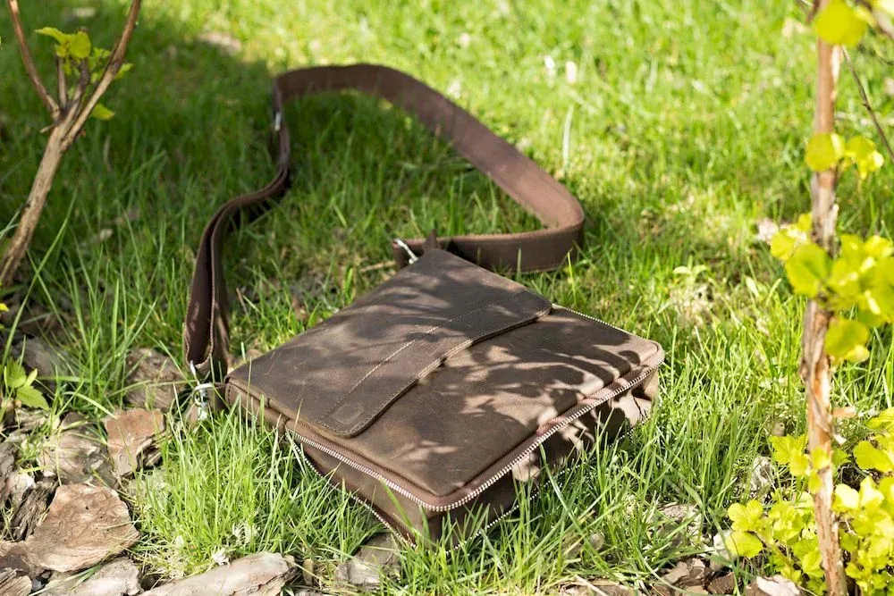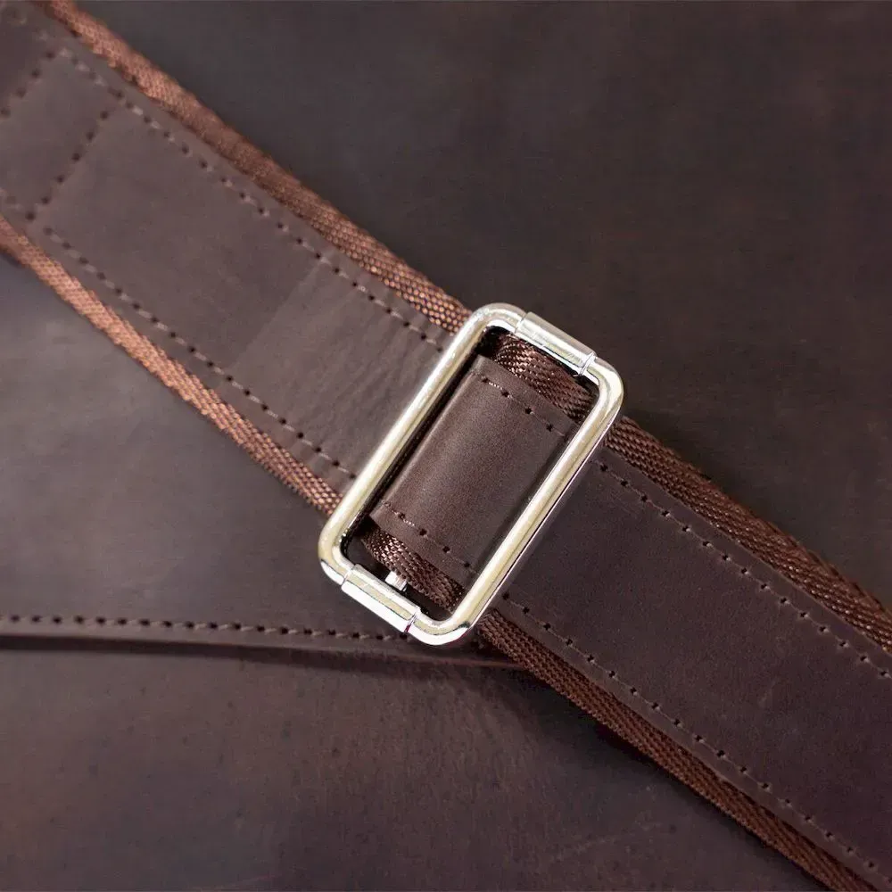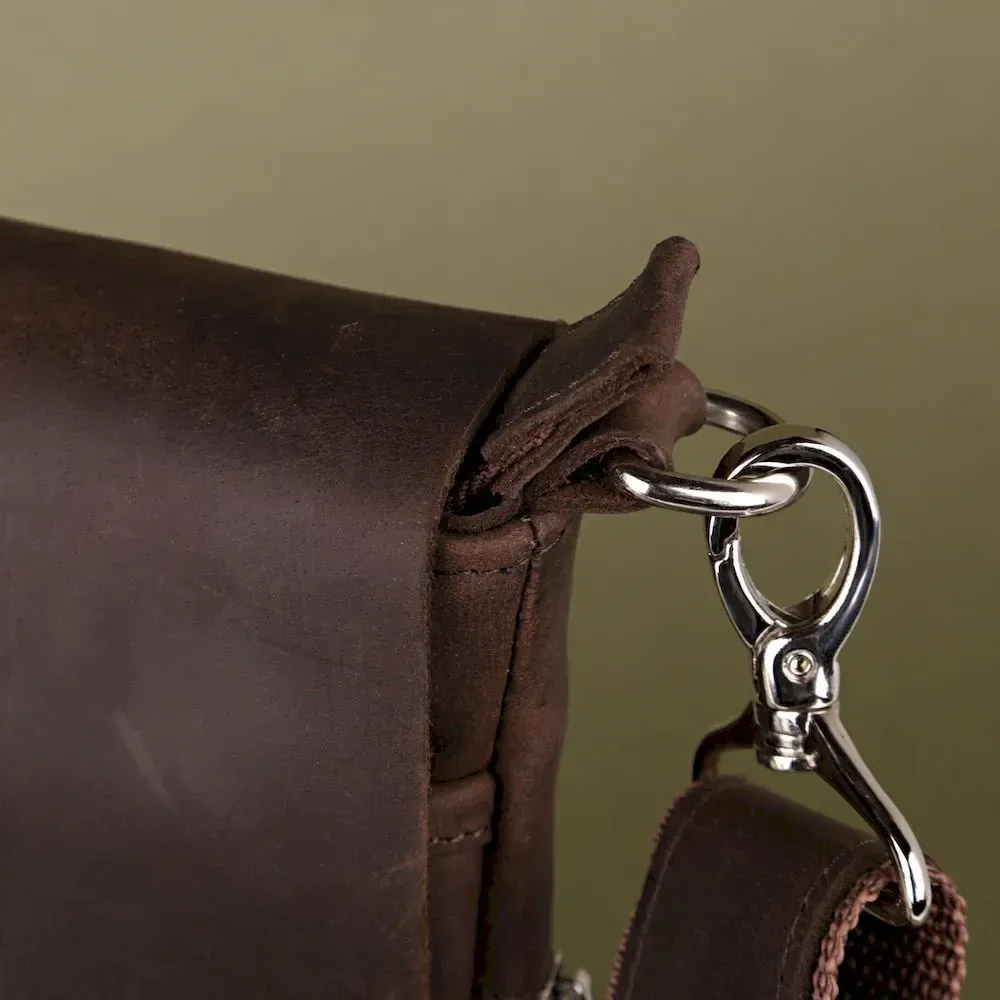 Сумочка носится с помощью ремня на карабинах, который изготовлен из качественной кожи и текстильного материала.