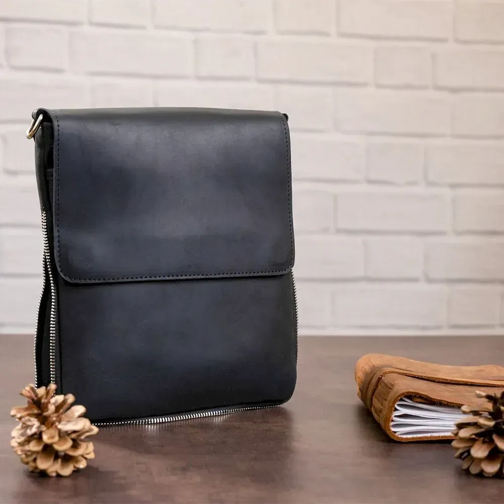 Сумка SHVIGEL 11017 із вінтажної шкіри Чорна