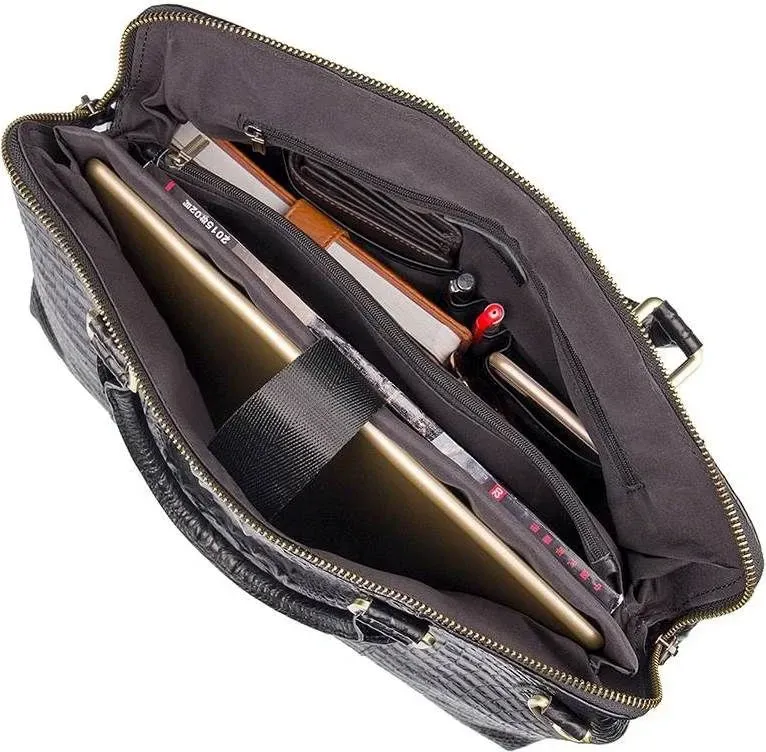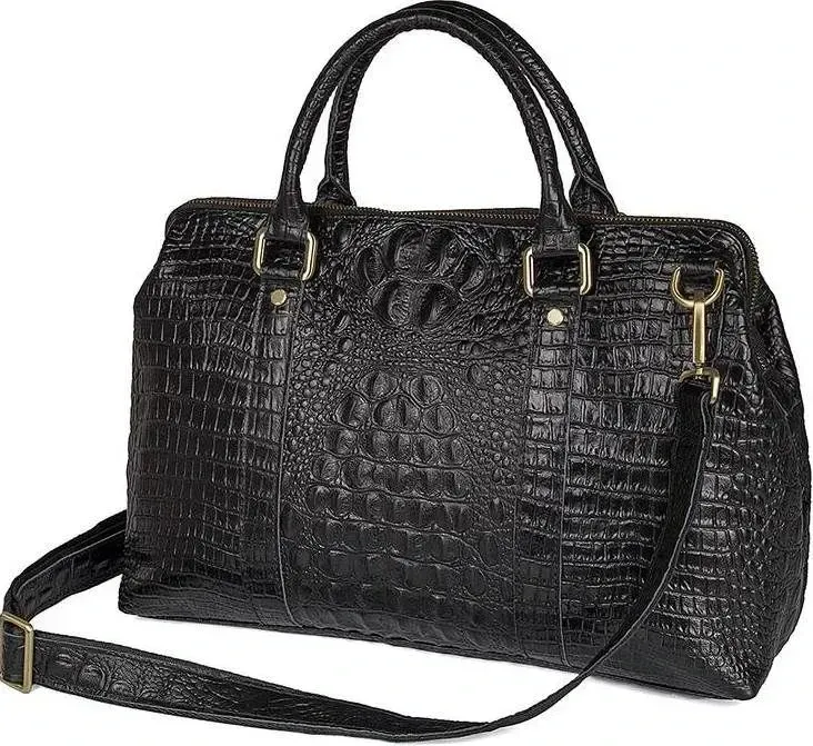 Містка сумка з натуральної шкіри з фактурою під крокодила, дуже міцна і є бездоганним аксесуаром до індивідуального стилю власника.