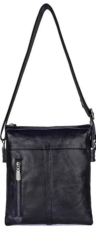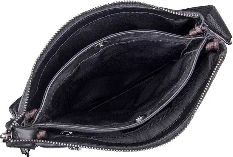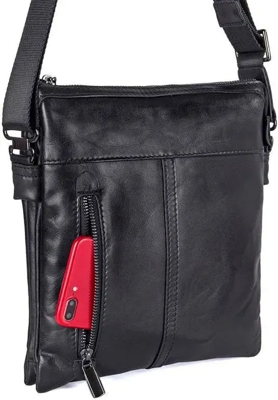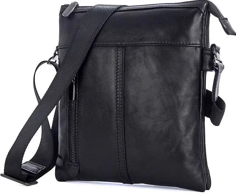 Зручна чоловіча сумка через плече, з якісної гладкої натуральної шкіри. Колір фурнітури: срібло чорне. Сумка має компактні розміри, але при цьому вона досить практична та функціональна. Підкладка виробу виконана з текстильного матеріалу приємного на дотик. Колір підкладки: чорний. Відмінна сумка, яка стане гарним подарунком, якщо Ви підшукуєте сюрприз для близької людини.
