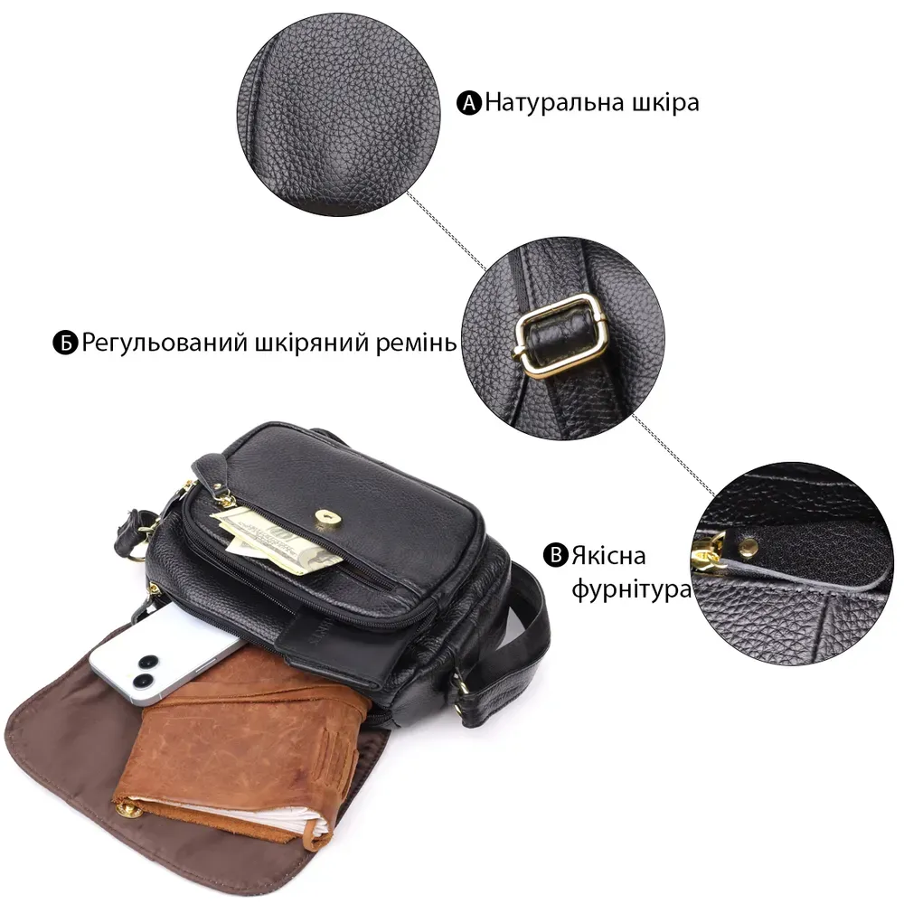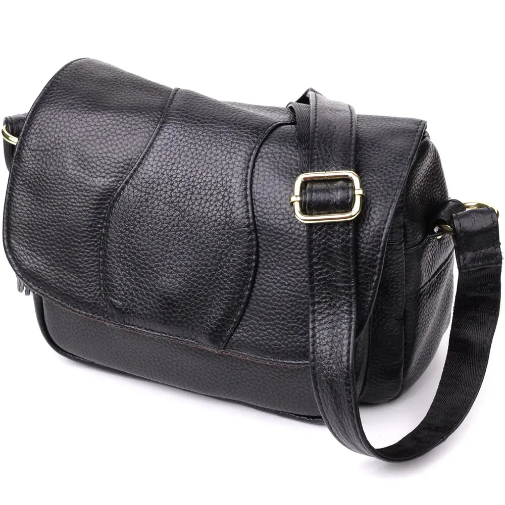 Сумка з натуральної шкіри для стильних жінок Vintage 22972 Чорний