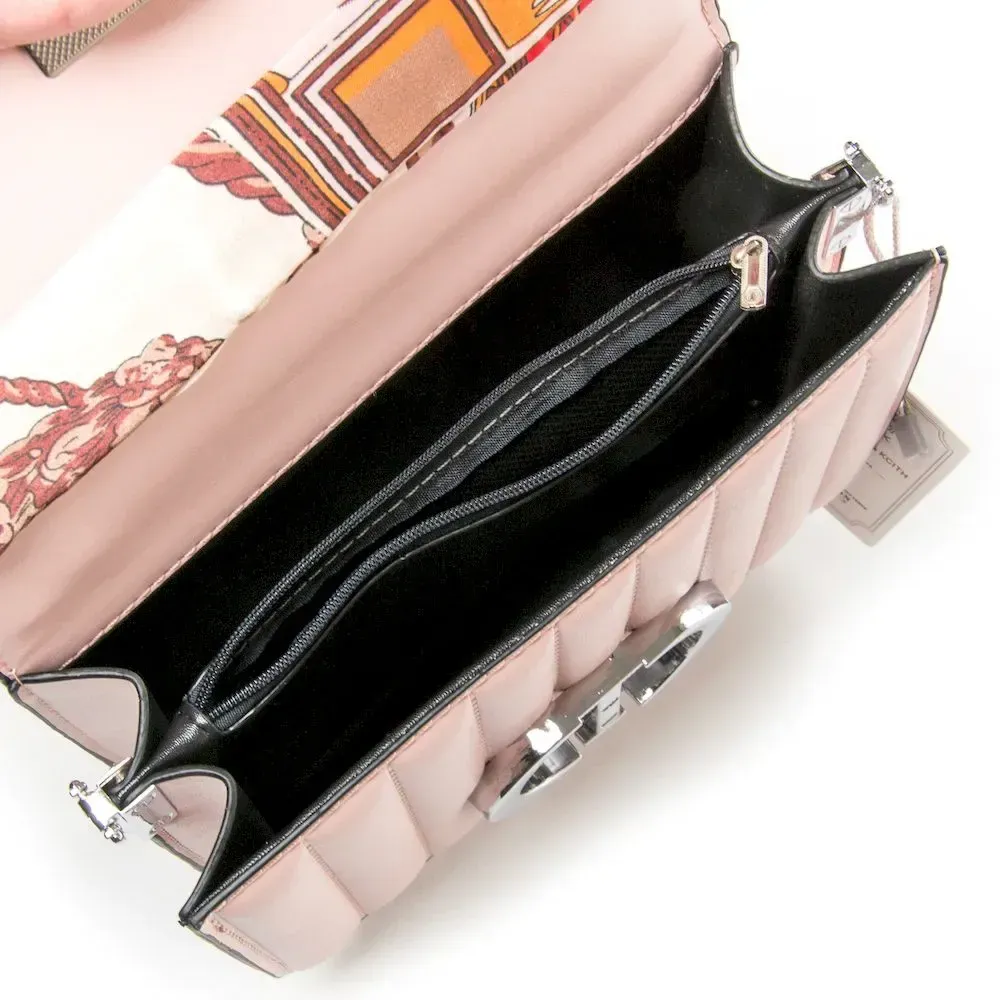 Жіноча компактна сумочка Fashion. Під клапаном знаходиться подвійне відділення, розділене кишенею-перегородкою на блискавці. У комплекті регульований плечовий ремінь та широкий ремінь.