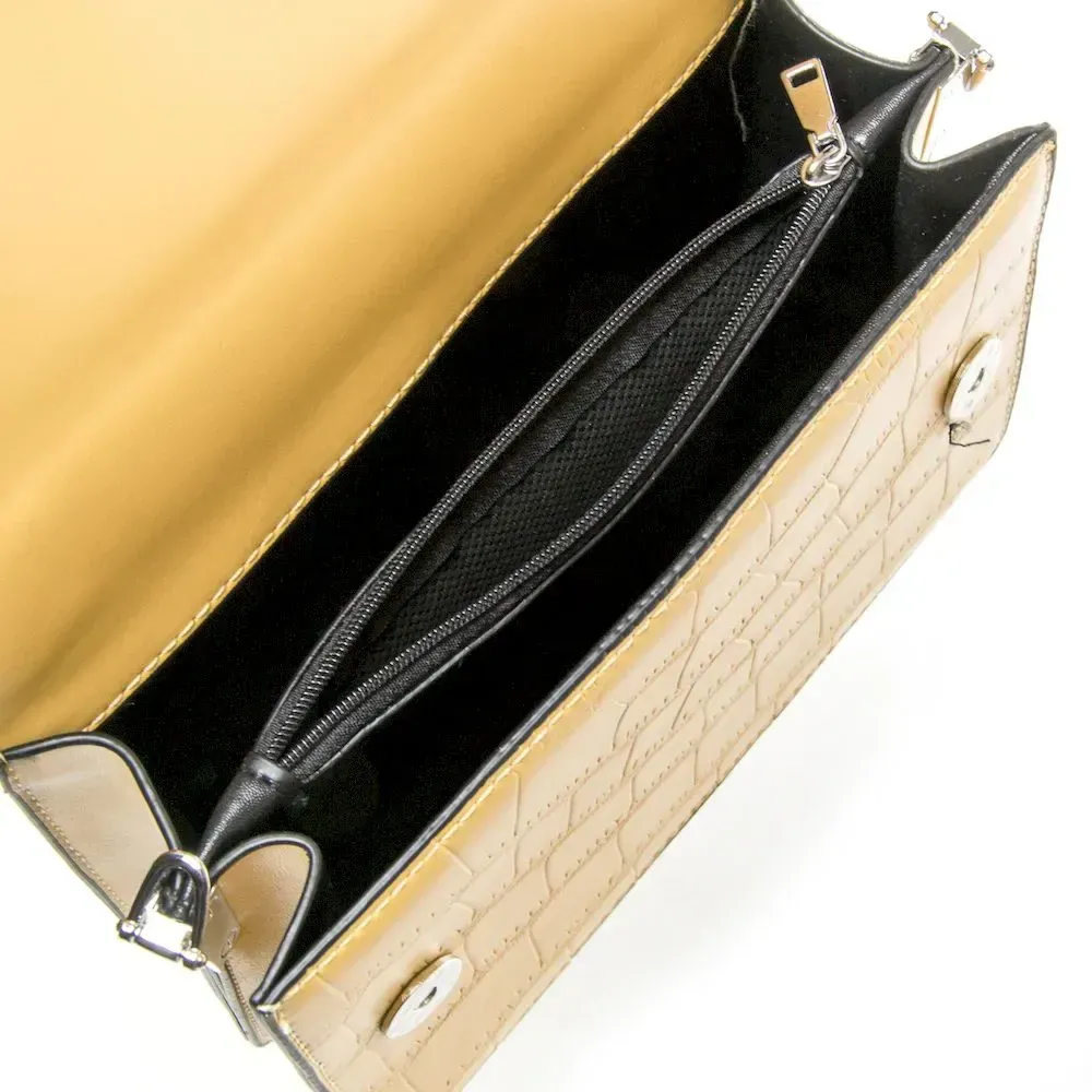 Жіноча сумочка Fashion. Під клапаном знаходиться подвійне відділення, розділене кишенею-перегородкою на блискавці. У комплекті регульований плечовий ремінь та ручка-ланцюжок.