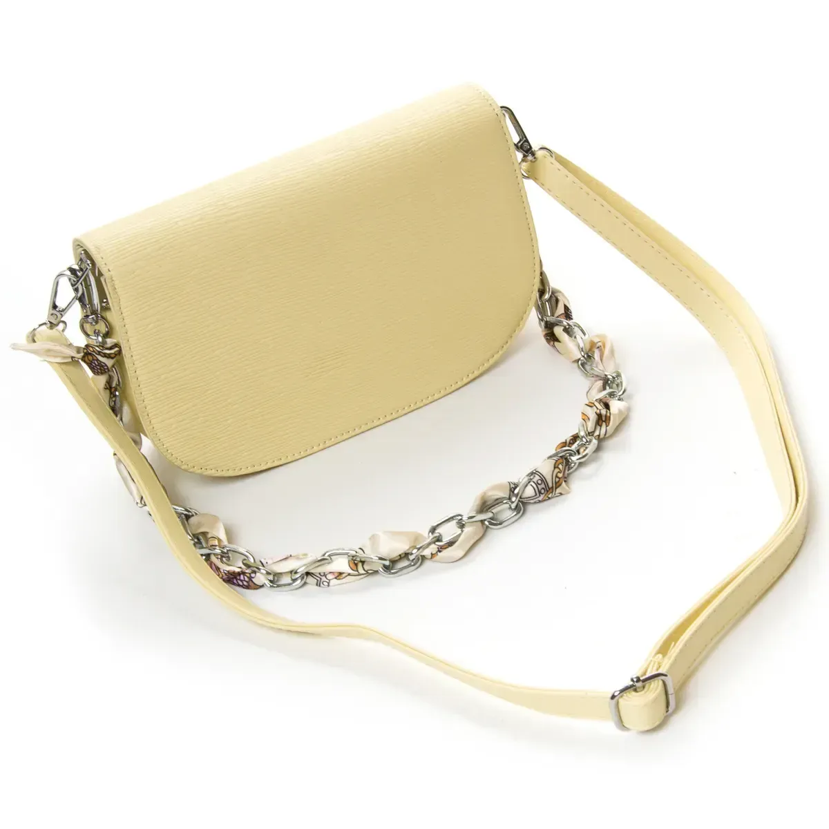 Жіноча компактна сумочка Fashion. Під клапаном знаходиться подвійне відділення, розділене кишенею-перегородкою на блискавці. У комплекті регульований плечовий ремінь та знімна ручка-ланцюжок.