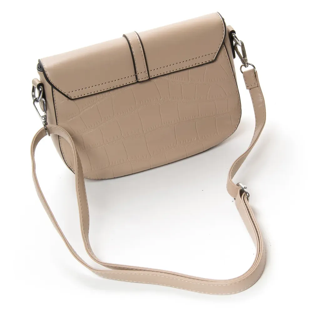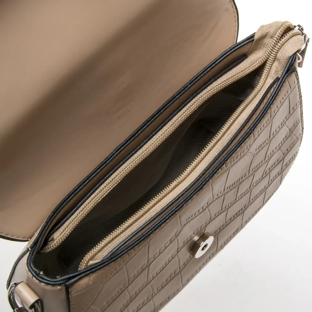 Женская сумочка Fashion. Клапан закрывается на магнитную кнопку. Внутри под молнией находится одно отделение с боковым открытым карманом.
