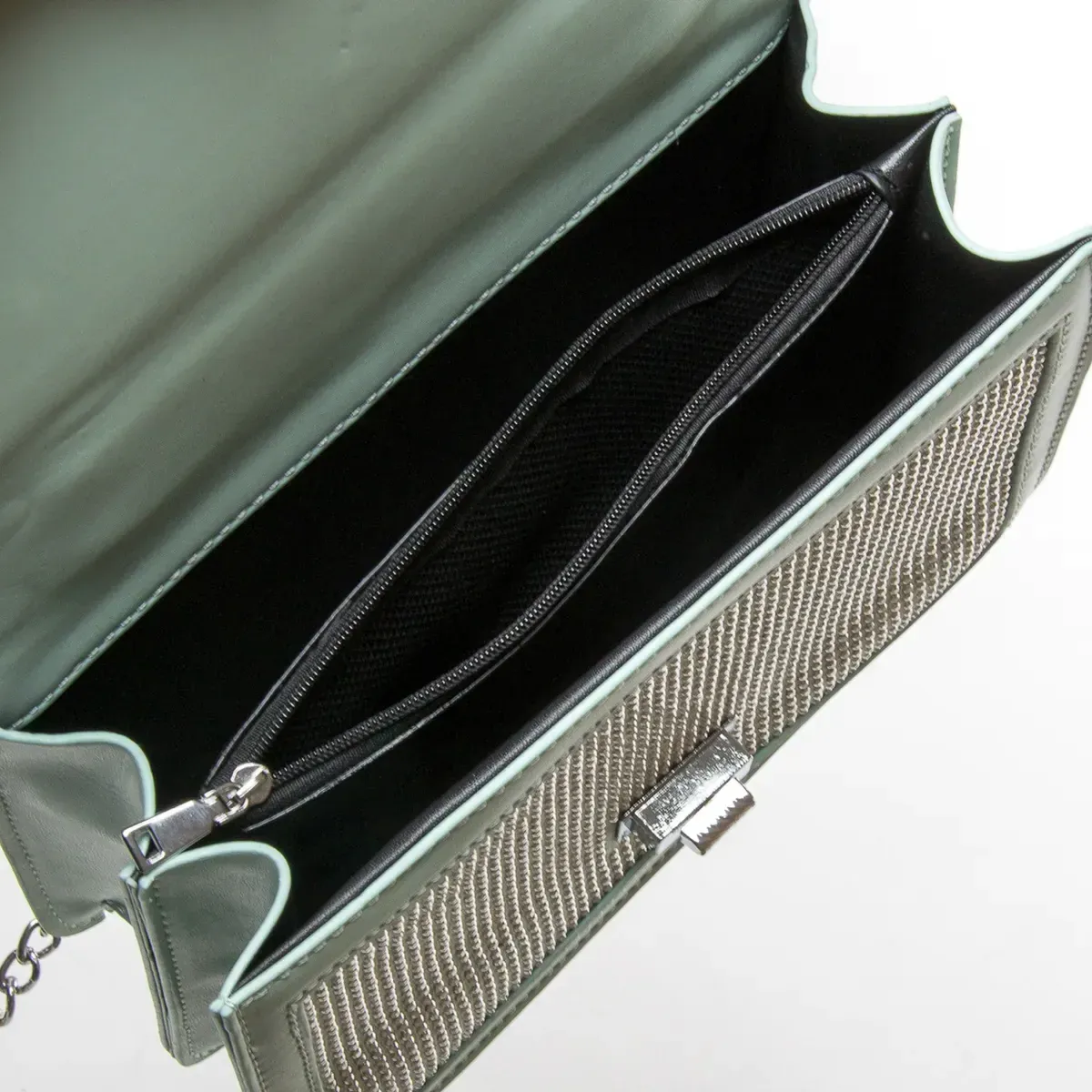 Жіноча компактна сумочка Fashion. Під клапаном знаходиться подвійне відділення, розділене кишенею-перегородкою на блискавці. Ручка-ланцюжок.