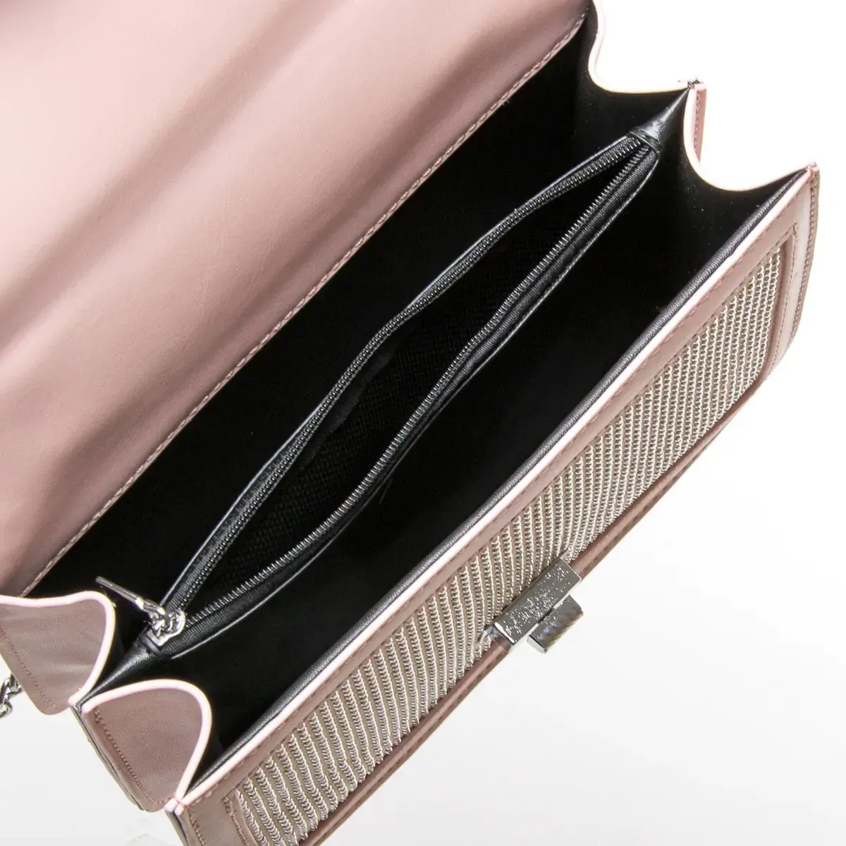 Жіноча компактна сумочка Fashion. Під клапаном знаходиться подвійне відділення, розділене кишенею-перегородкою на блискавці. Ручка-ланцюжок.