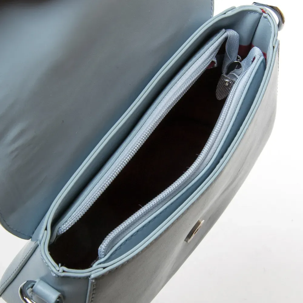 Женская сумочка Fashion. Клапан закрывается на магнитную кнопку. Внутри под молнией находится одно отделение с боковым открытым карманом.