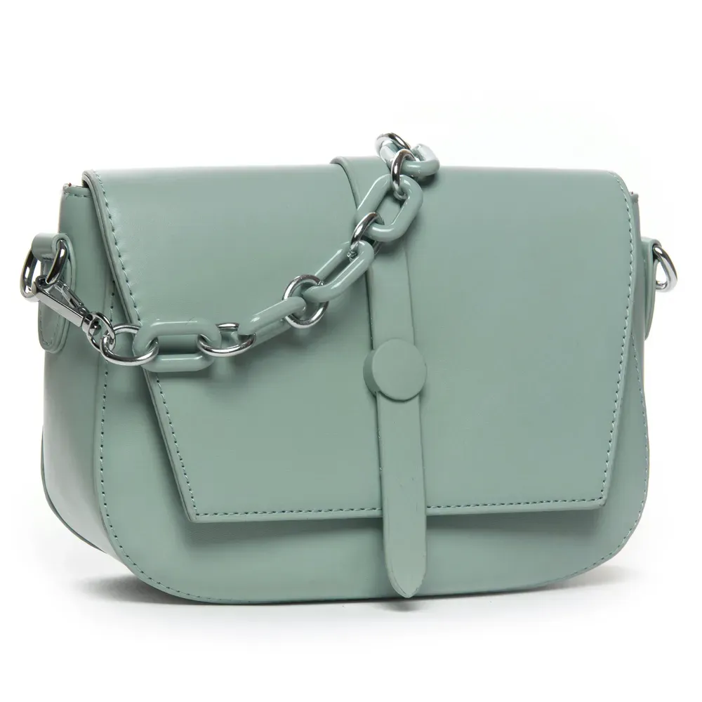 Женская сумочка Fashion. Клапан закрывается на магнитную кнопку. Внутри под молнией находится одно отделение с боковым открытым карманом.
