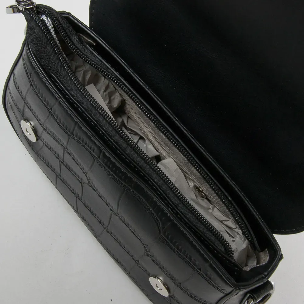 Женская сумочка Fashion. Клапан закрывается на магнитную кнопку. Внутри под молнией находится одно отделение с боковым открытым карманом и карманом на молнии.