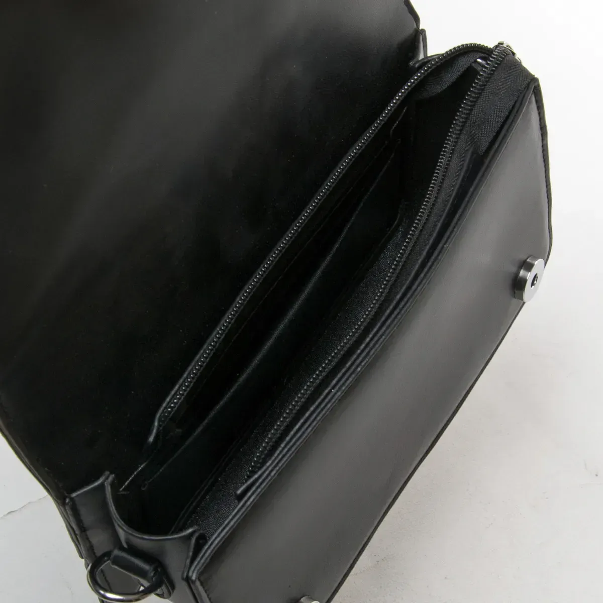 Жіноча компактна сумочка Fashion. Під клапаном додатково закривається на блискавку. Усередині знаходиться одне відділення з боковою відкритою кишенею. У комплекті регульований плечовий ремінь.