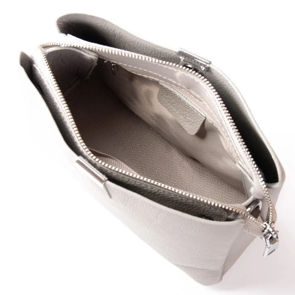Закрывается на молнию. Внутри находится двойное отделение, разделенное карманом-перегородкой на молнии, открытый карман и боковой карман на молнии. Снаружи сумки на обратной стороне есть большой карман на молнии. Уплотненное дно на металлических ножках.