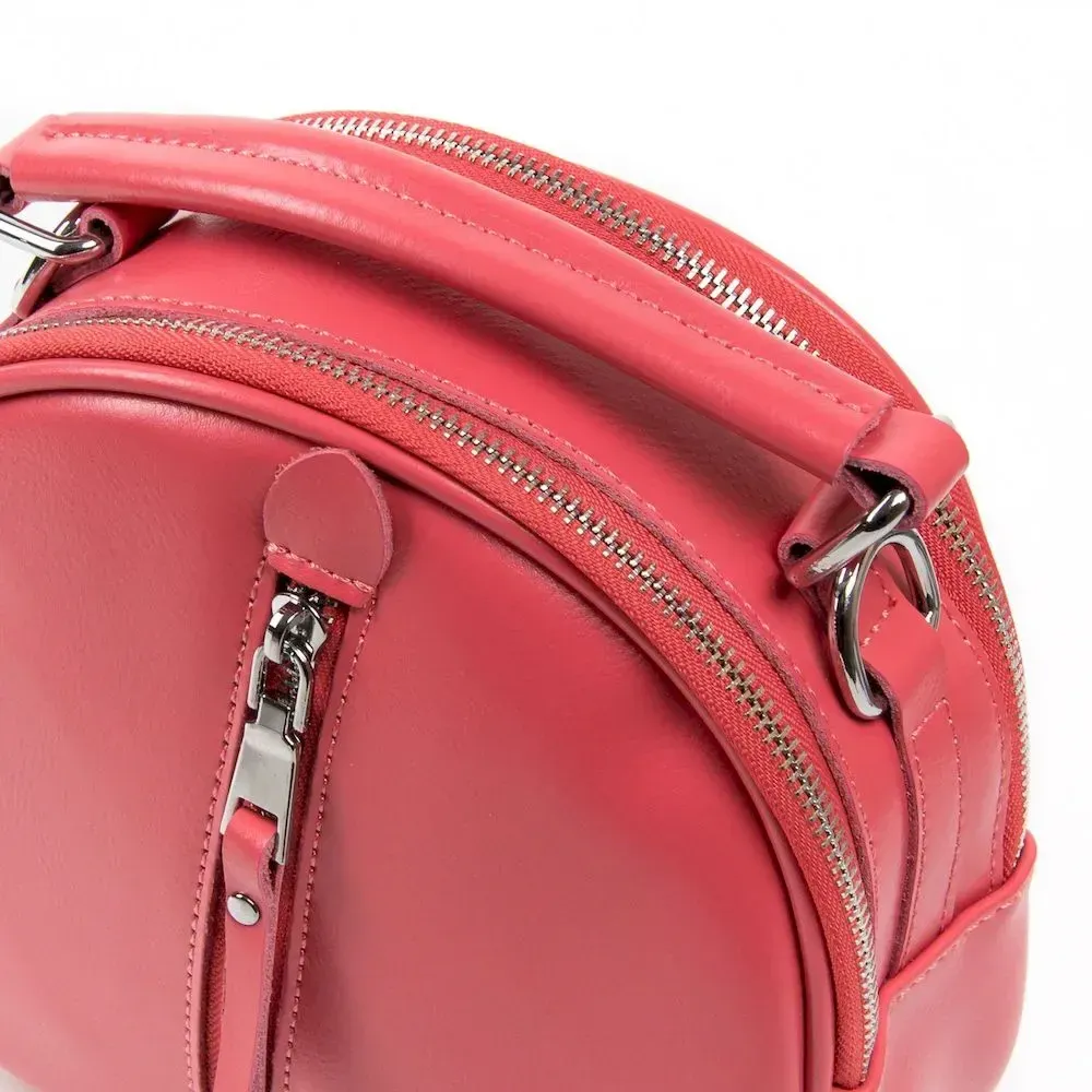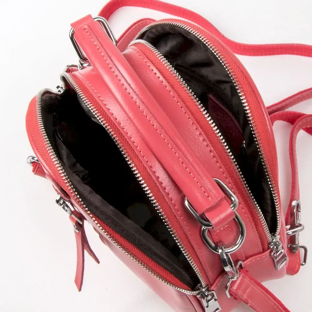 Жіноча шкіряна сумочка-рюкзак Alex Rai. Можна носити як рюкзак або на плечі на ремені, що регулюється. Два відділення, що закриваються на блискавку. Усередині відділень є подвійна відкрита кишеня та кишеня на блискавці. На фасаді та зворотному боці знаходяться кишені на блискавці. Плечові лямки регулюються за довжиною.
