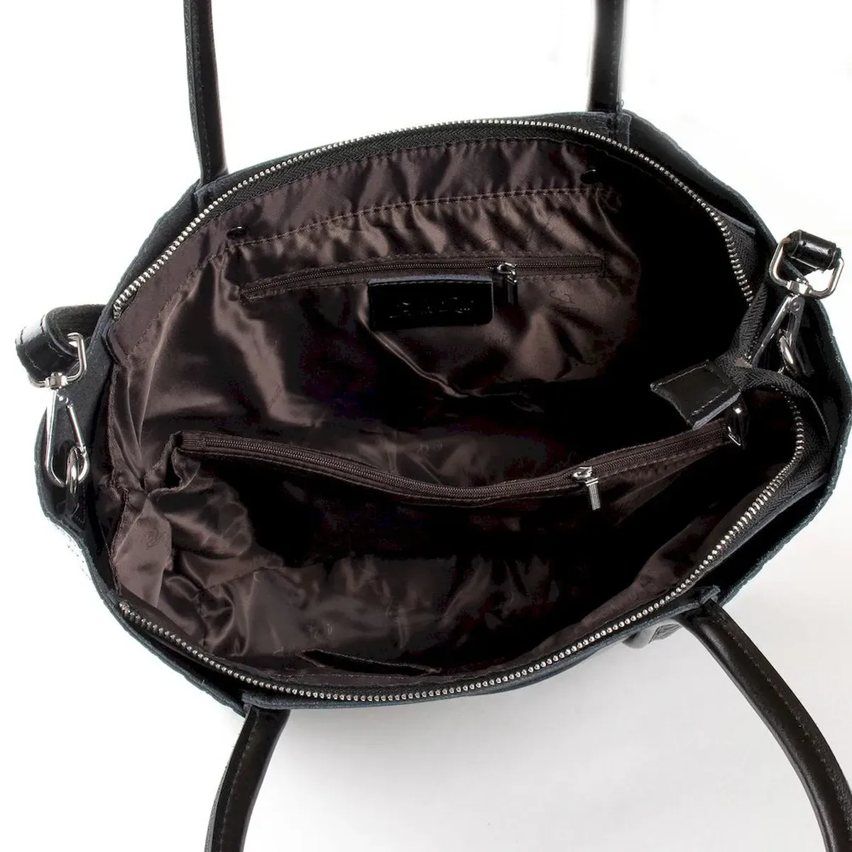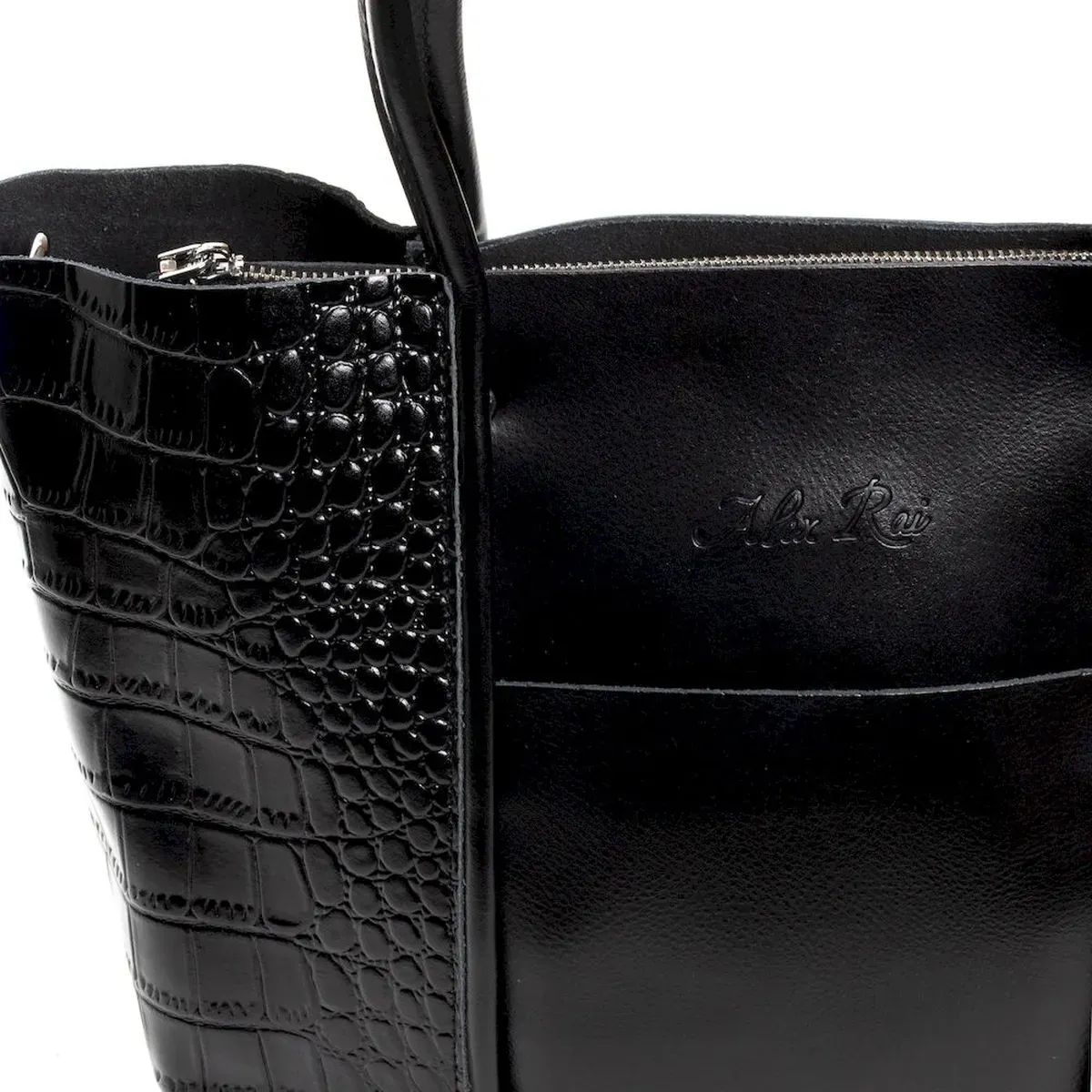 Велика жіноча сумка Alex Rai. Виготовлена із натуральної щільної шкіри. Закривається на блискавку. Усередині знаходиться подвійне відділення, розділене кишенею-перегородкою на блискавці, подвійна відкрита кишеня та кишеня на блискавці. На фасаді є відкрита кишеня, а на звороті розташована кишеня на блискавці. Жорстке дно на металевих ніжках. У комплекті регульований плечовий ремінь.