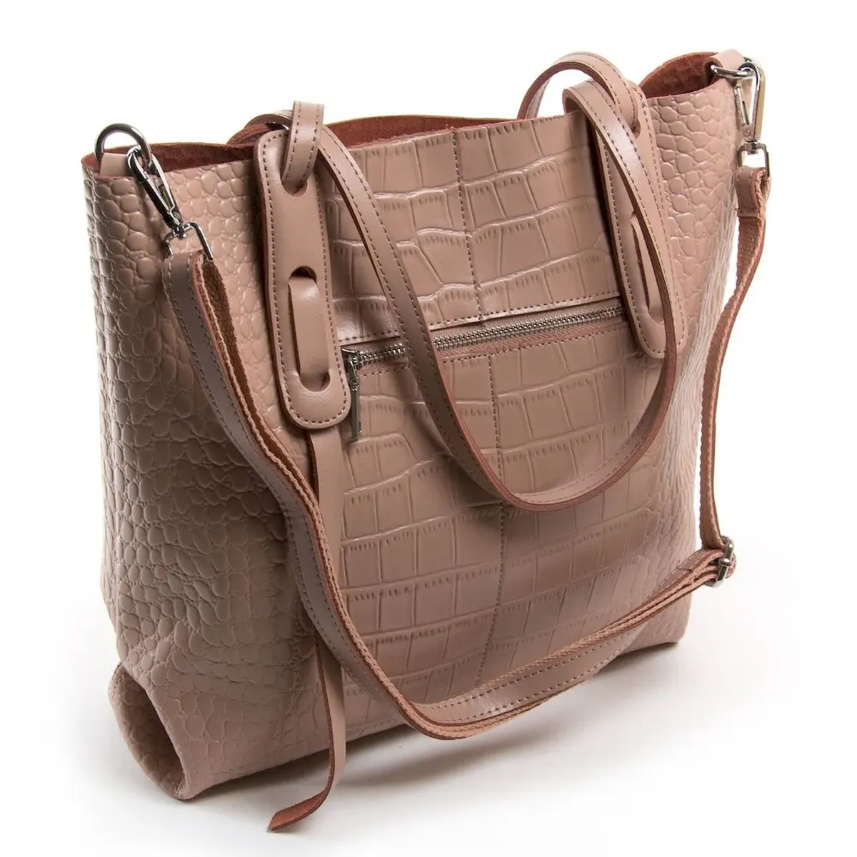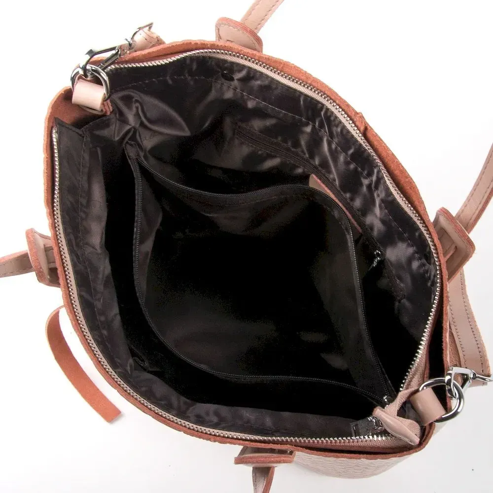 Велика жіноча сумка Alex Rai. Виготовлена із натуральної щільної шкіри. Закривається на блискавку. Усередині є подвійне відділення, розділене кишенею-перегородкою на блискавці, відкрита подвійна кишеня та кишеня на блискавці. Зовні сумки на звороті є кишеню на блискавці. У комплекті регульований плечовий ремінь.