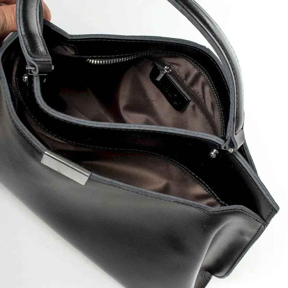 Жіноча сумка Alex Rai. Виготовлена із натуральної щільної шкіри. Два відділення, що закриваються на блискавку. Усередині є подвійна відкрита кишеня та кишеня на блискавці. Дно сумки жорстке, із металевими ніжками. У комплекті регульований плечовий ремінь.