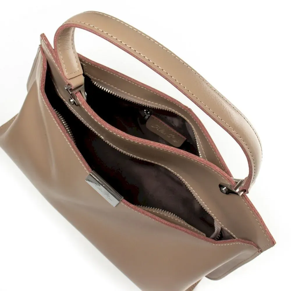 Жіноча сумка Alex Rai. Виготовлена із натуральної щільної шкіри. Два відділення, що закриваються на блискавку. Усередині є подвійна відкрита кишеня та кишеня на блискавці. Дно сумки жорстке, із металевими ніжками. У комплекті регульований плечовий ремінь.