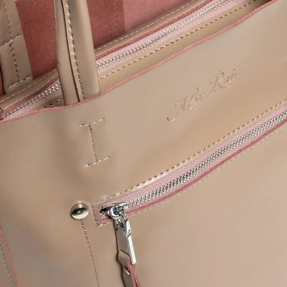 Жіноча сумка Alex Rai. Виготовлена із натуральної щільної шкіри. Закривається на блискавку. Усередині знаходиться подвійне відділення, розділене кишенею-перегородкою на блискавці, подвійна відкрита кишеня та кишеня на блискавці на внутрішніх стінках сумки. На фасаді та на звороті розташовані кишені на блискавці. Дно сумки з металевими ніжками. У комплекті регульований плечовий ремінь.