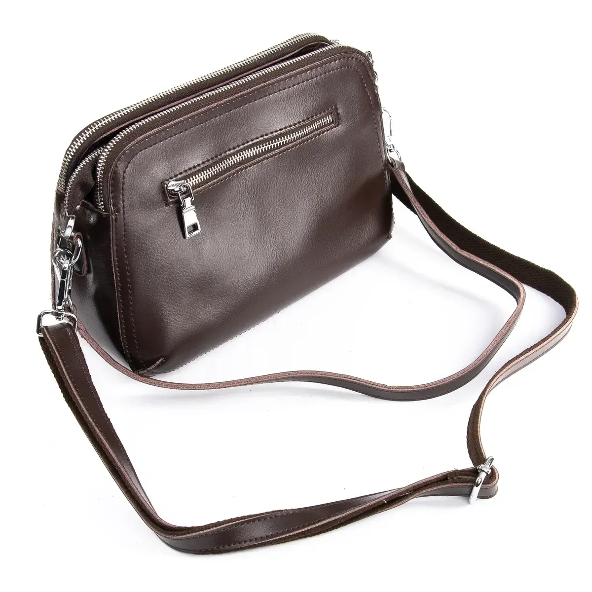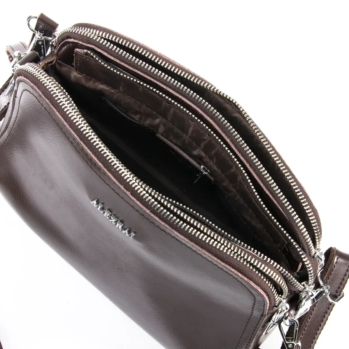 Жіноча сумочка-клатч Alex Rai. Виготовлена із натуральної м'якої шкіри. Три відділення, що закриваються на блискавці. Усередині центрального відділення знаходиться подвійна відкрита кишеня та кишеня на блискавці. На звороті є кишеня на блискавці. У комплекті регульований плечовий ремінь та ручка, що знімається. Розмір (див.) 25*19*12, висота ручок 23 см.