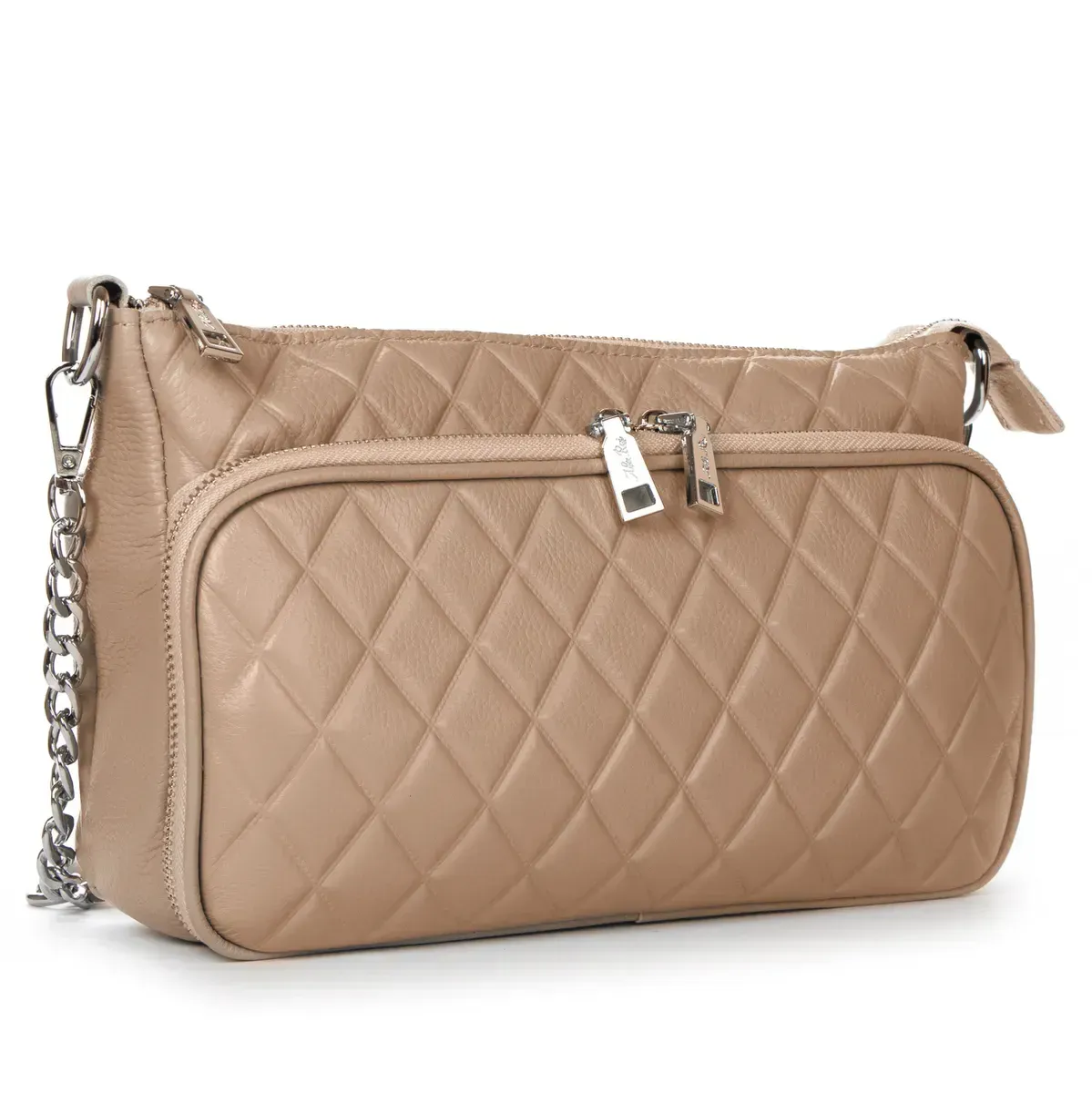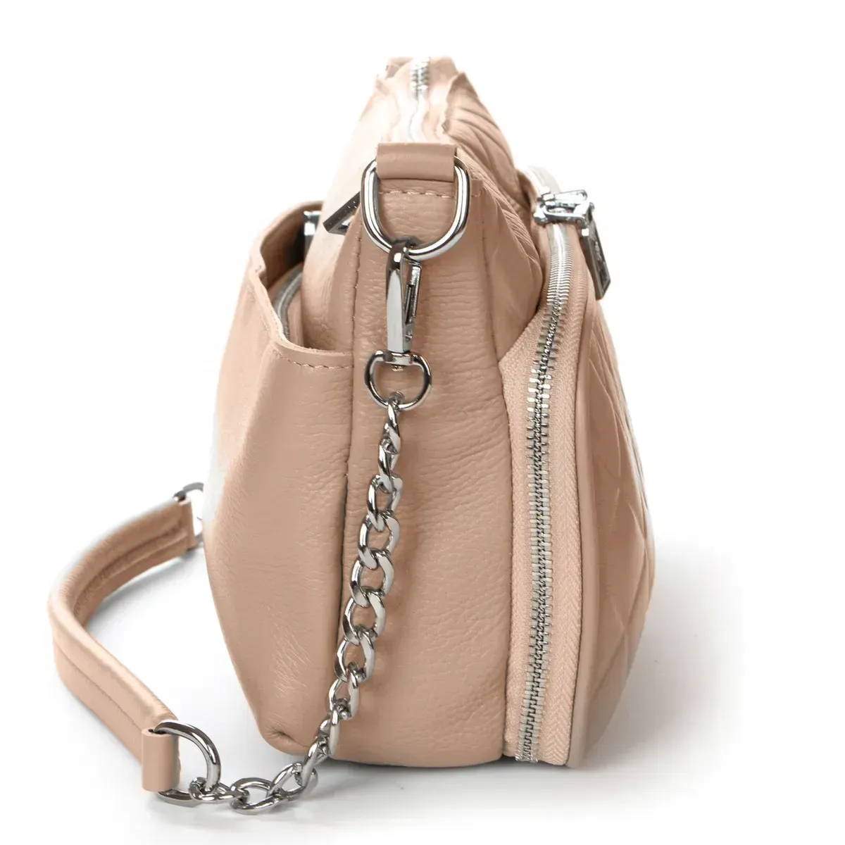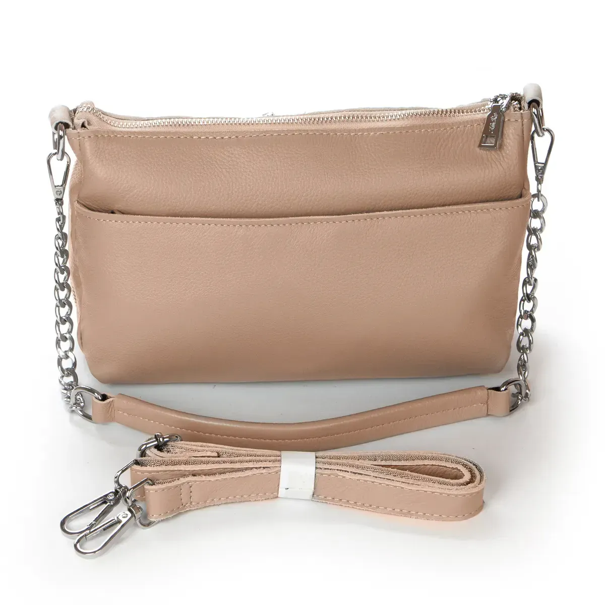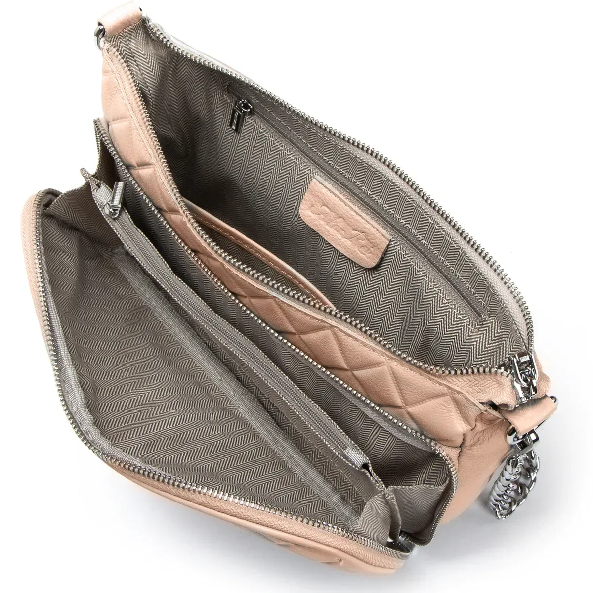 Жіноча шкіряна сумка Alex Rai. Виготовлена із натуральної м'якої шкіри. Основне відділення закривається на блискавку і всередині є бічна відкрита кишеня та кишеня на блискавці. На фасаді знаходиться додаткове відділення, всередині розділене кишенею-перегородкою на блискавці. Зовні сумки на зворотному боці є кишеня на блискавці.