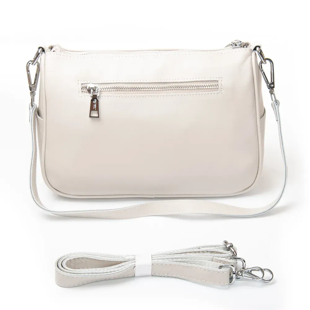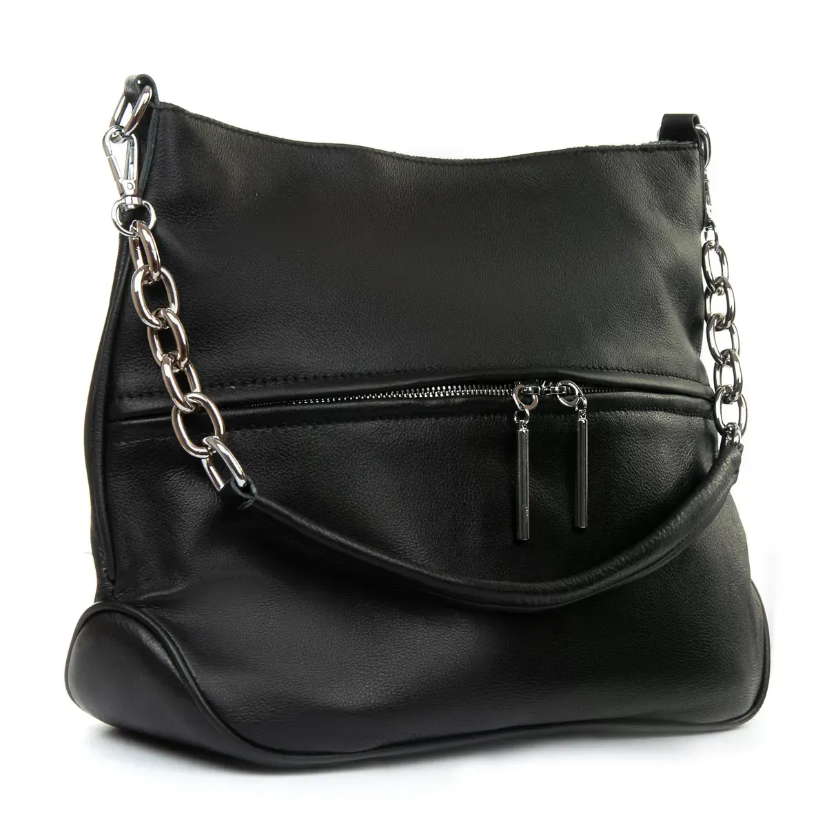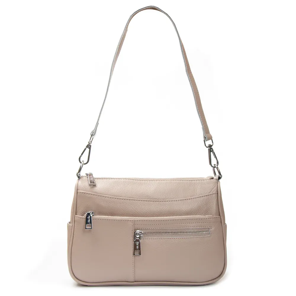 Жіноча шкіряна сумка Alex Rai. Виготовлена із натуральної м'якої шкіри. Закривається на блискавку. Усередині знаходиться подвійне відділення, розділене кишенею-перегородкою на блискавці, nbsp; відкрита кишеня і бічна кишеня на блискавці. Зовні сумки на фасаді та на звороті є великі кишені на блискавці. Ущільнене дно.