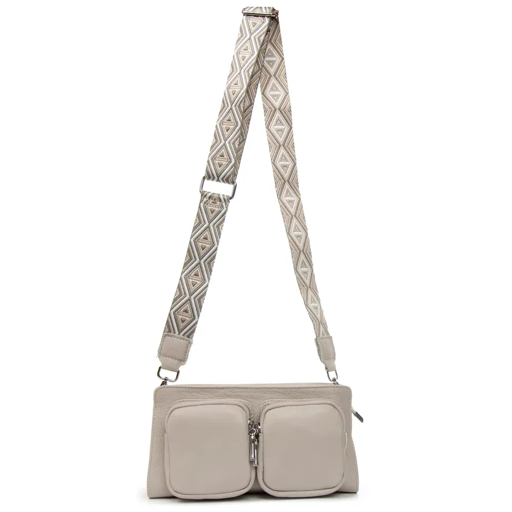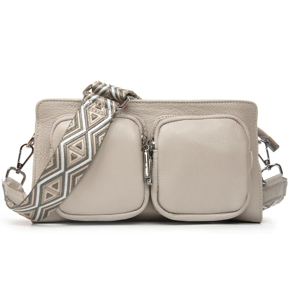 В комплекте регулируемый плечевой кожаный ремень и регулируемый текстильный широкий ремень.