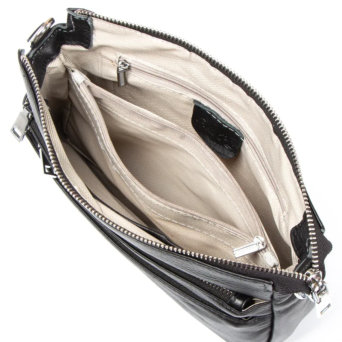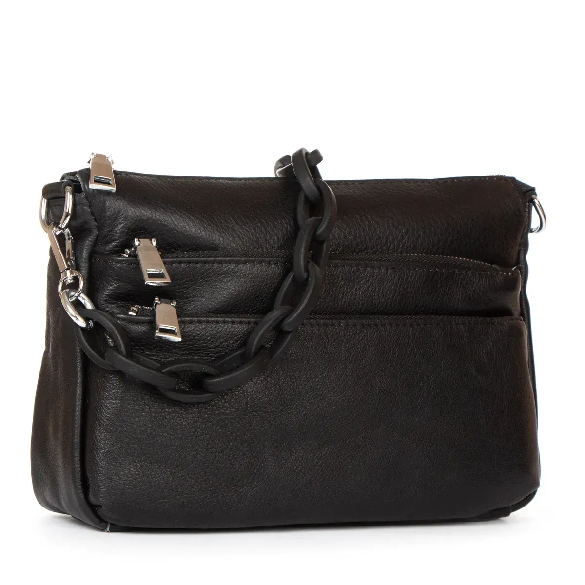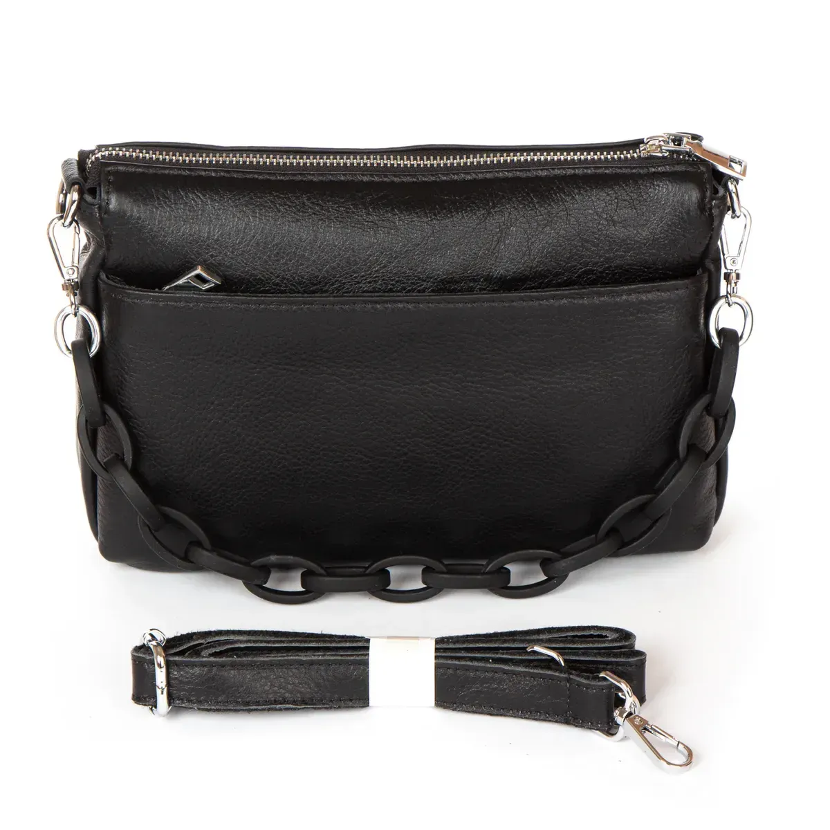 Жіноча шкіряна сумка Alex Rai. Виготовлена із натуральної м'якої шкіри. Закривається на блискавку. Усередині знаходиться подвійне відділення, розділене кишенею-перегородкою на блискавці, відкрита кишеня та бічна кишеня на блискавці. Зовні сумки на фасаді є дві кишені на блискавці, а на звороті одна кишеня.