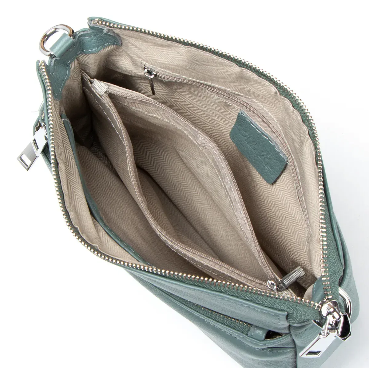 Жіноча шкіряна сумка Alex Rai. Виготовлена із натуральної м'якої шкіри. Закривається на блискавку. Усередині знаходиться подвійне відділення, розділене кишенею-перегородкою на блискавці, відкрита кишеня та бічна кишеня на блискавці. Зовні сумки на фасаді є дві кишені на блискавці, а на звороті одна кишеня.