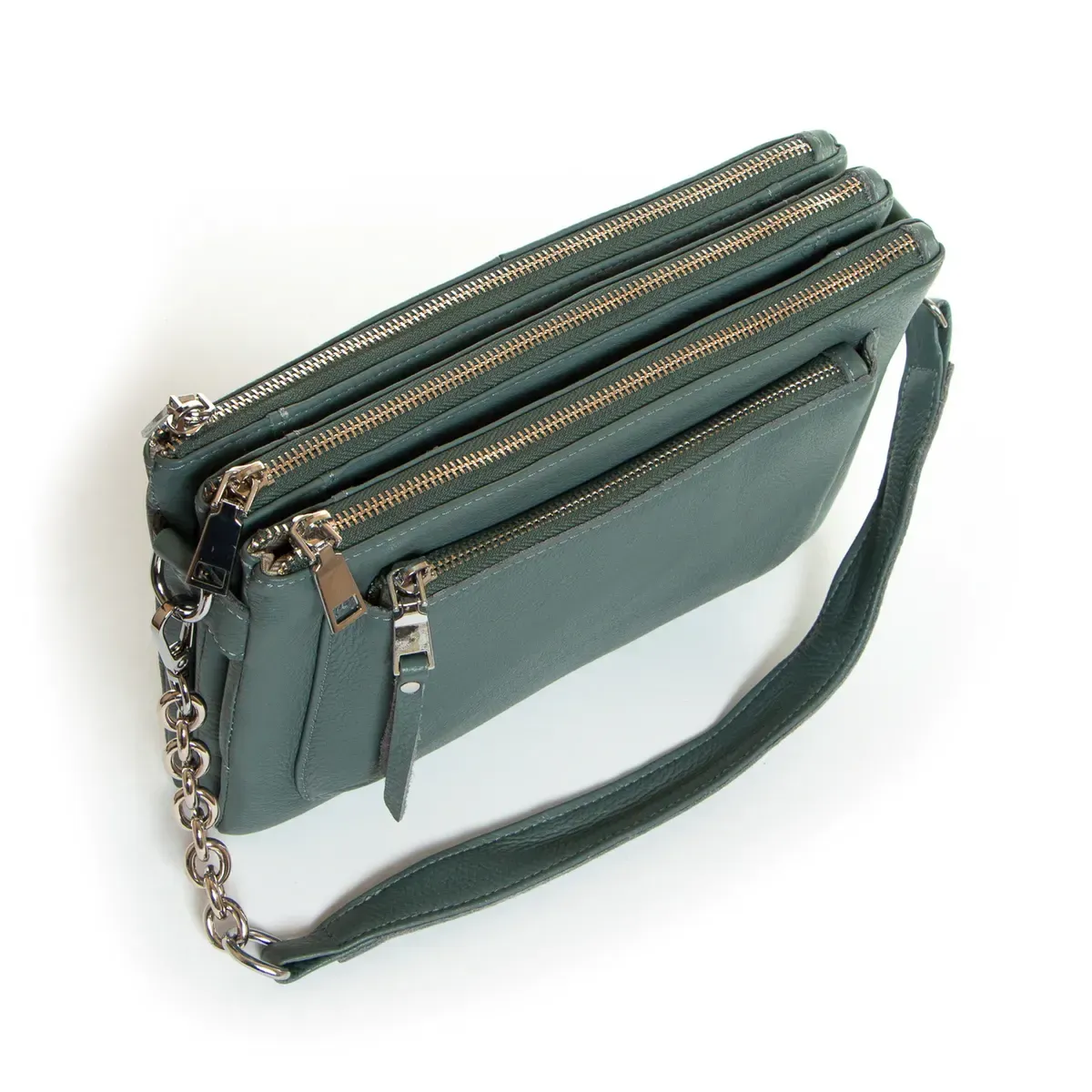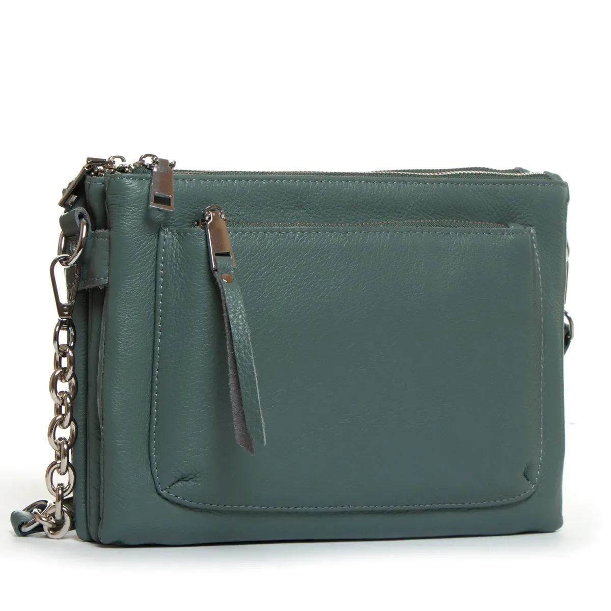 Жіноча шкіряна сумочка - клатч Alex Rai. Виготовлена із натуральної м'якої шкіри. Три відділення, що закриваються на блискавці. Усередині одного відділення є бічна кишеня на блискавці. Зовні сумки на фасаді та на звороті розташовані кишені на блискавці.