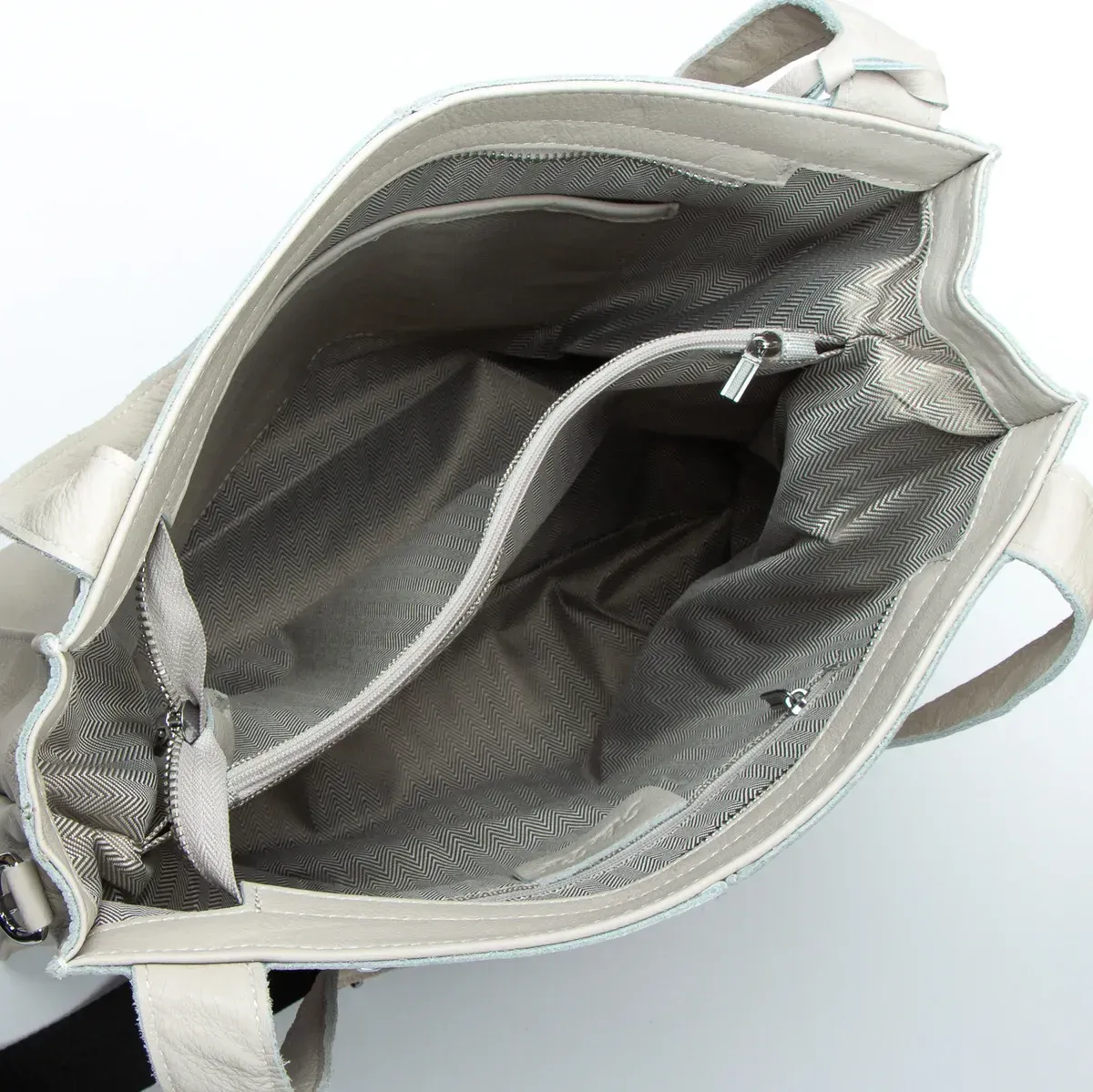 Жіноча шкіряна сумка Alex Rai. Виготовлена із натуральної м'якої шкіри. Закривається на блискавку. Усередині знаходиться подвійне відділення, розділене кишенею-перегородкою на блискавці, відкрита бічна кишеня та кишеня на блискавці. Зовні сумки на звороті знаходяться кишеня на блискавці. Ущільнене дно на металевих ніжках.