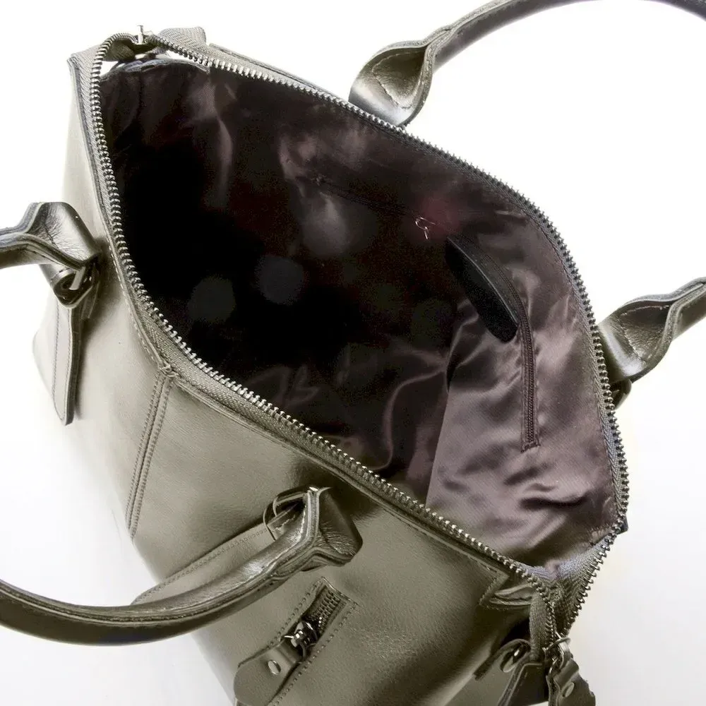 Жіноча сумка Alex Rai. Виготовлена із натуральної шкіри. Закривається на блискавку. Усередині знаходиться подвійне відділення, розділене кишенею-перегородкою на блискавці, подвійна відкрита кишеня та кишеня на блискавці на внутрішніх стінках сумки. На фасаді та на звороті є кишені на блискавці. Сумка має тверде дно на металевих ніжках. У комплекті регульований плечовий ремінь.