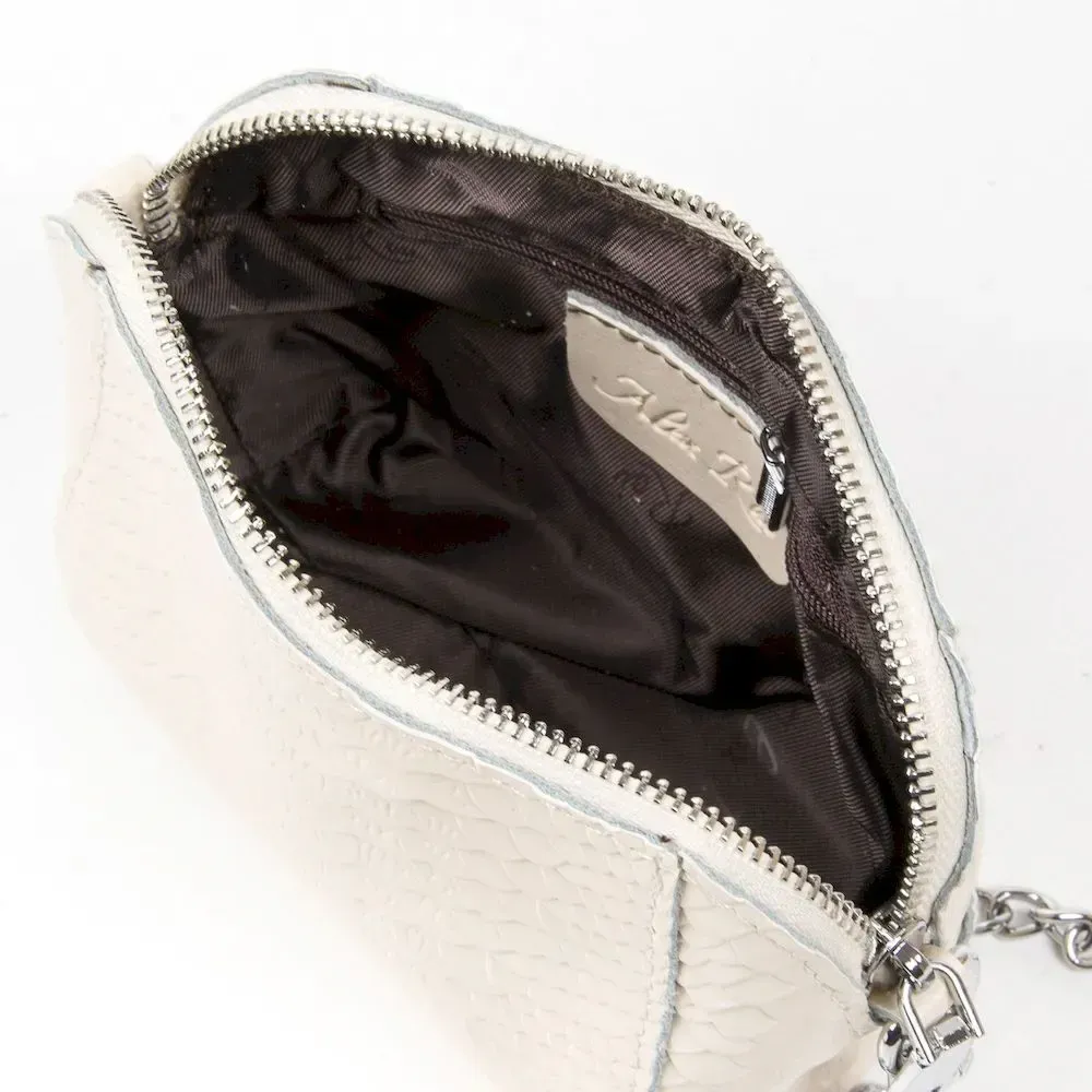 Компактна жіноча шкіряна сумочка-клатч Alex Rai. Виготовлена із натуральної щільної шкіри. Одне відділення закривається на блискавку. Усередині знаходиться відкрита кишеня та кишеня на блискавці. У комплекті плечовий ремінь.