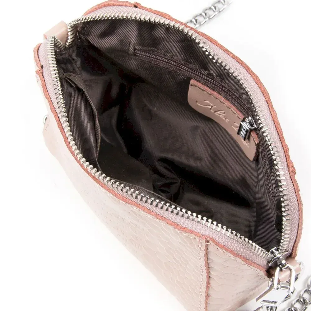 Компактна жіноча шкіряна сумочка-клатч Alex Rai. Виготовлена із натуральної щільної шкіри. Одне відділення закривається на блискавку. Усередині знаходиться відкрита кишеня та кишеня на блискавці. У комплекті плечовий ремінь.