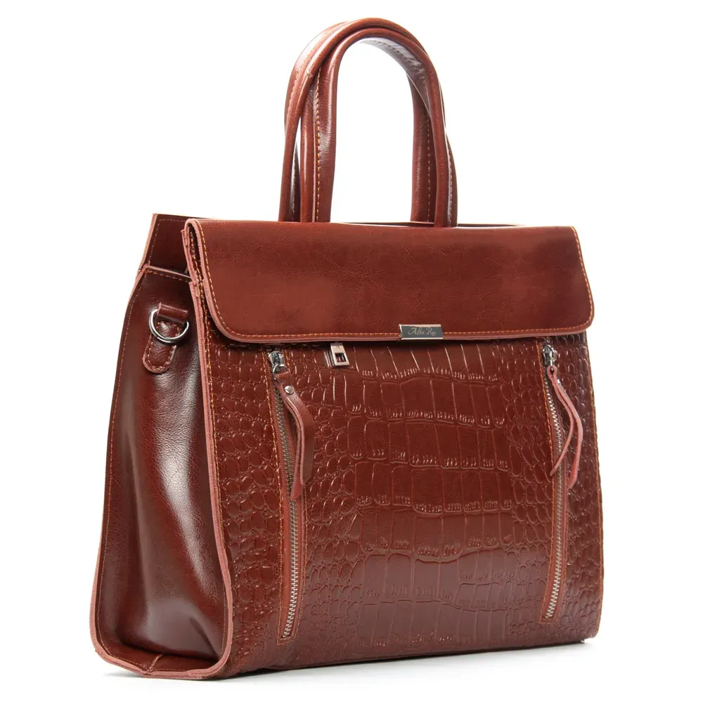 Сумка Женская Классическая кожа ALEX RAI 5052 camel croco