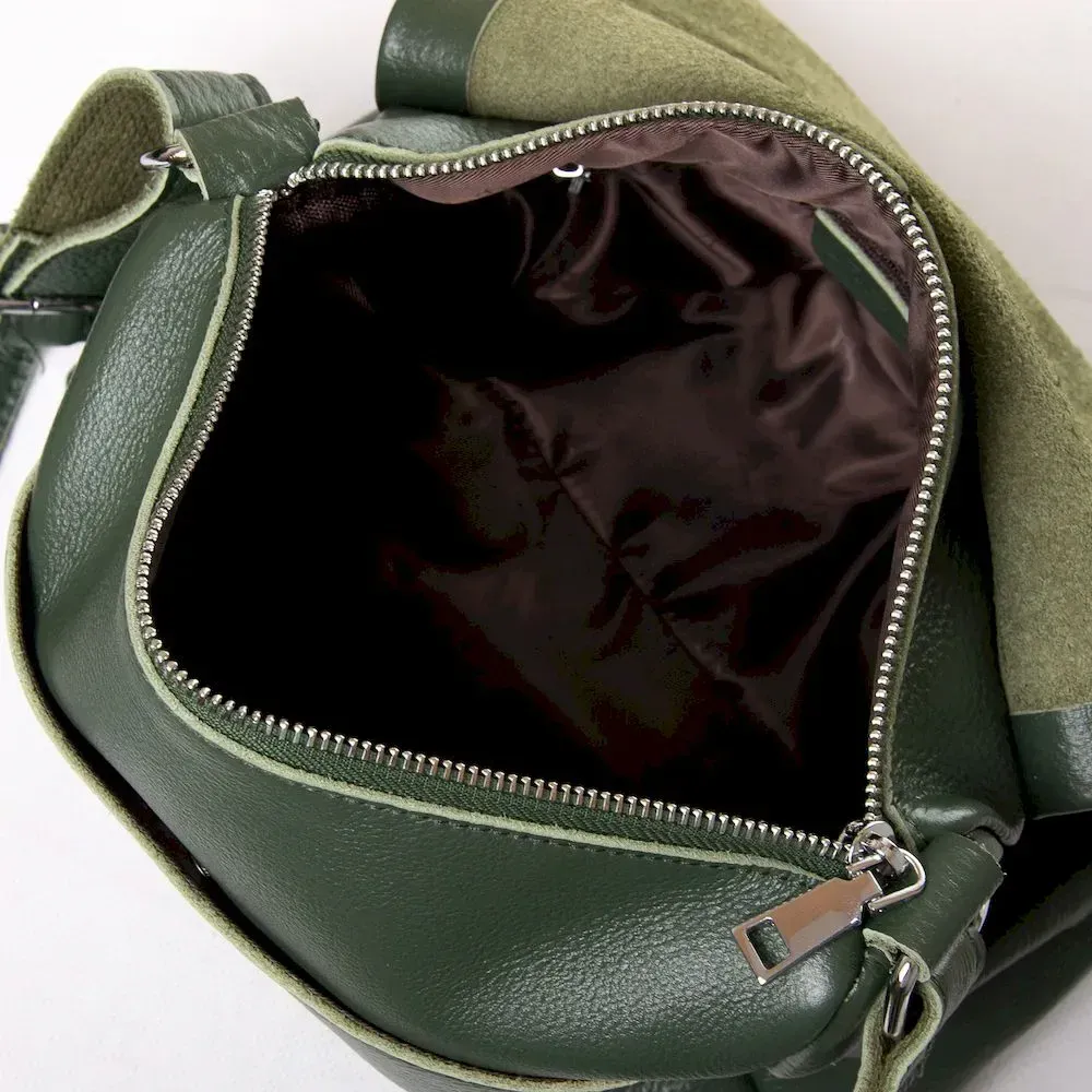 Жіноча компактна сумочка Alex Rai. Виготовлена із натуральної м'якої шкіри. Під клапаном додатково закривається на блискавку. Усередині відділення знаходиться відкрита подвійна кишеня та бічна кишеня на блискавці. На фасаді розташована велика кишеня на магнітній кнопці.