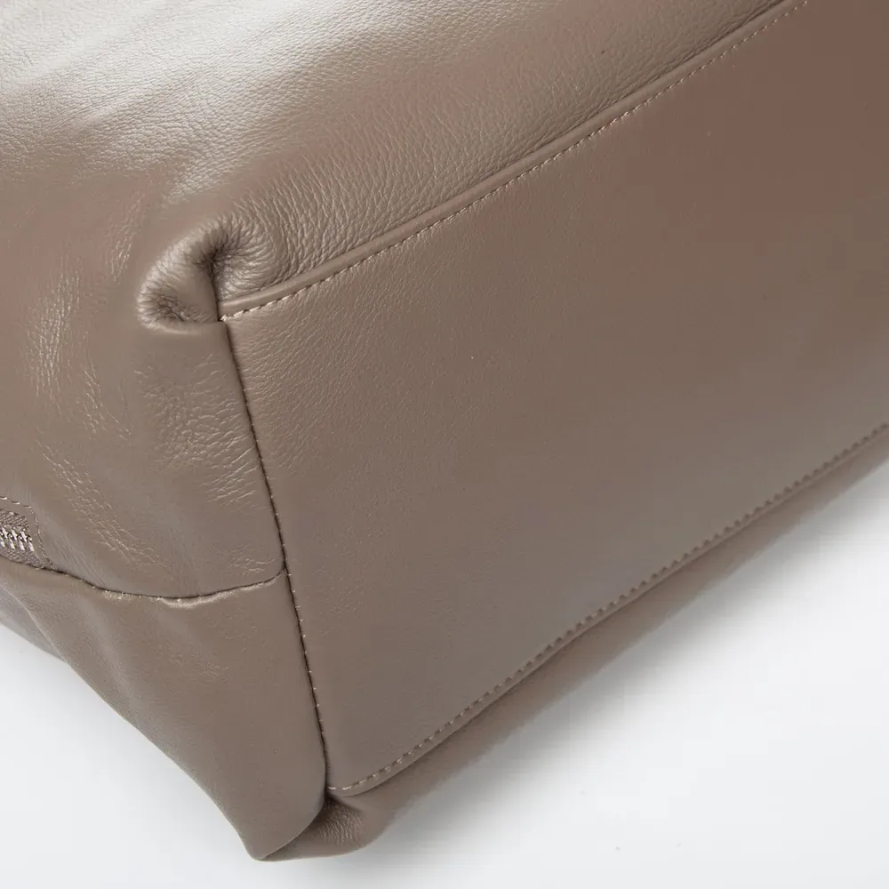 Изготовлена из натуральной мягкой кожи. Два отделения, закрываются на молнии. Внутри находится открытый карман и боковой карман на молнии. Снаружи сумки на торцах и обратной стороне есть большие карманы на молнии. Уплотненное дно.