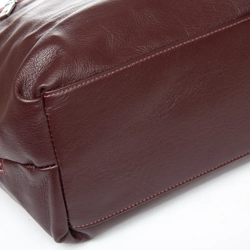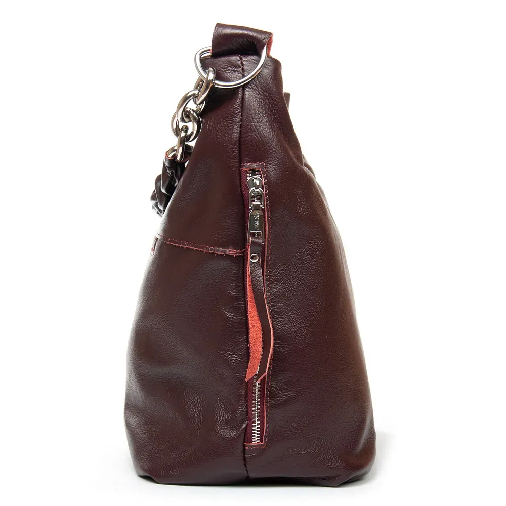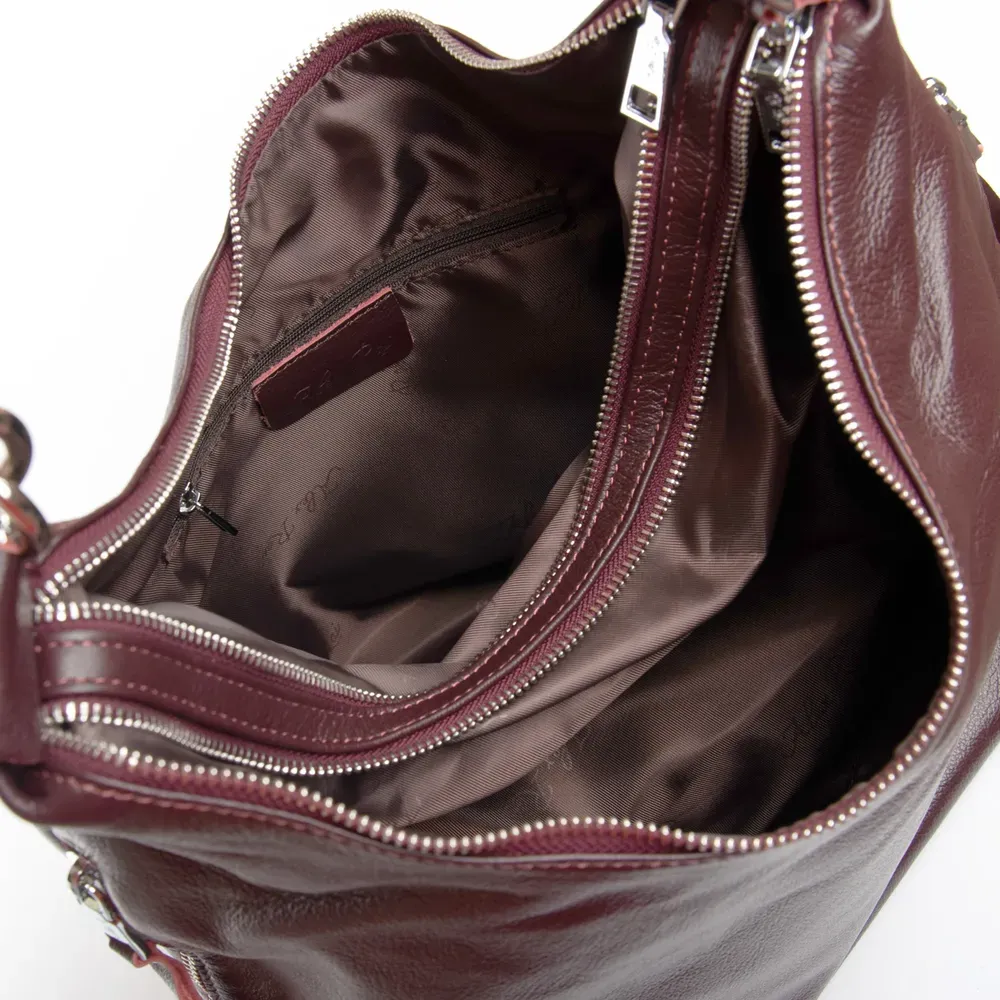 Изготовлена из натуральной мягкой кожи. Два отделения, закрываются на молнии. Внутри находится открытый карман и боковой карман на молнии. Снаружи сумки на торцах и обратной стороне есть большие карманы на молнии. Уплотненное дно.