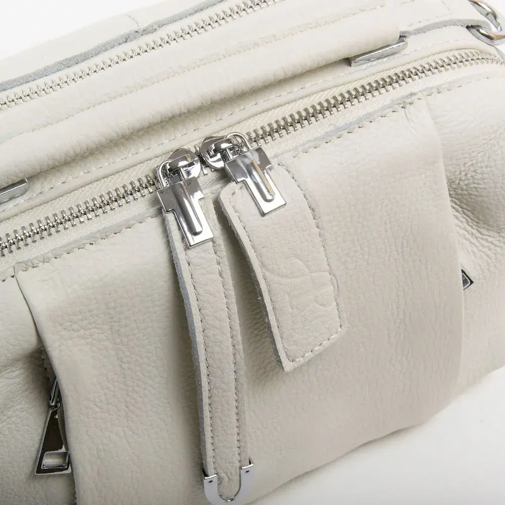 Жіноча сумочка Alex Rai. Виготовлена із натуральної м'якої шкіри. Два відділення закриваються на блискавку. Усередині відділень знаходиться відкрита кишеня та бічна кишеня на блискавці. Зовні на фасаді та на звороті є кишені на блискавці. У комплекті регульований плечовий ремінь.