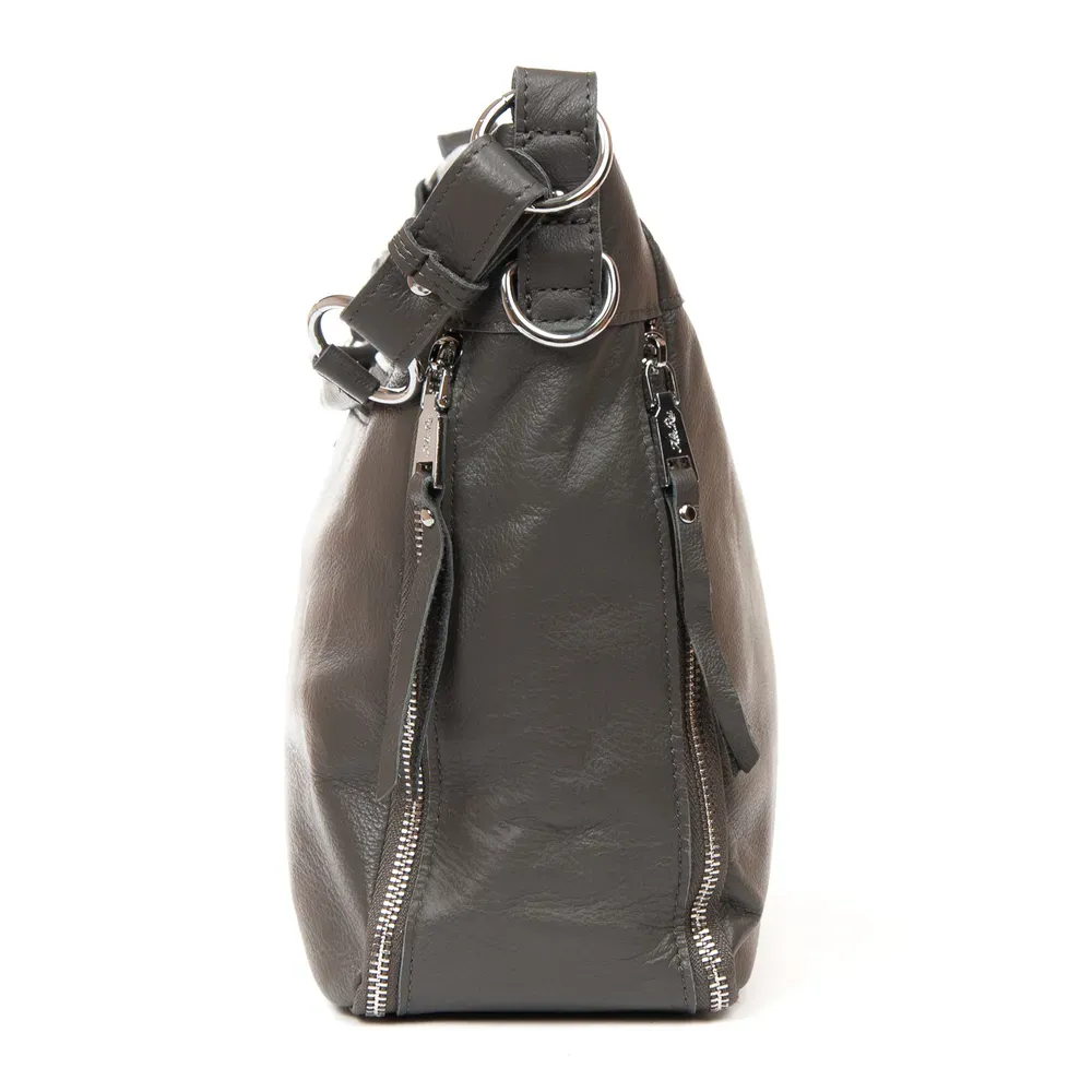 Женская кожаная сумка Alex Rai. Изготовлена из натуральной мягкой кожи. Закрывается на молнию. Внутри находится двойное отделение, разделенное карманом-перегородкой на молнии, двойной открытый карман и боковой карман на молнии. Снаружи сумки на фасаде и обратной стороне расположены карманы на молнии.