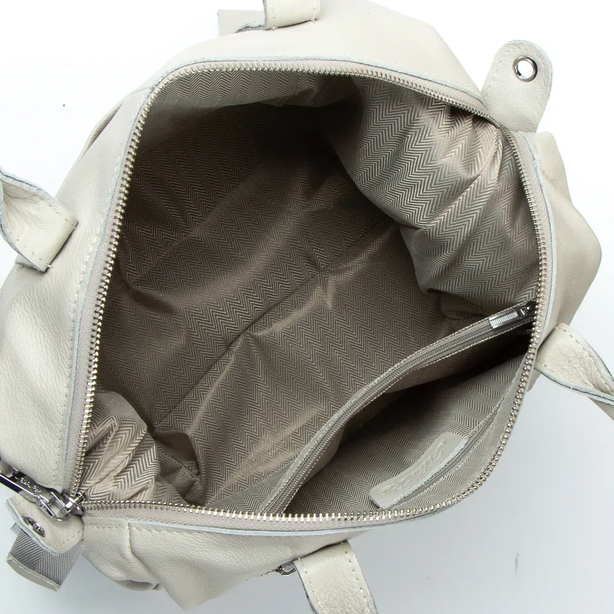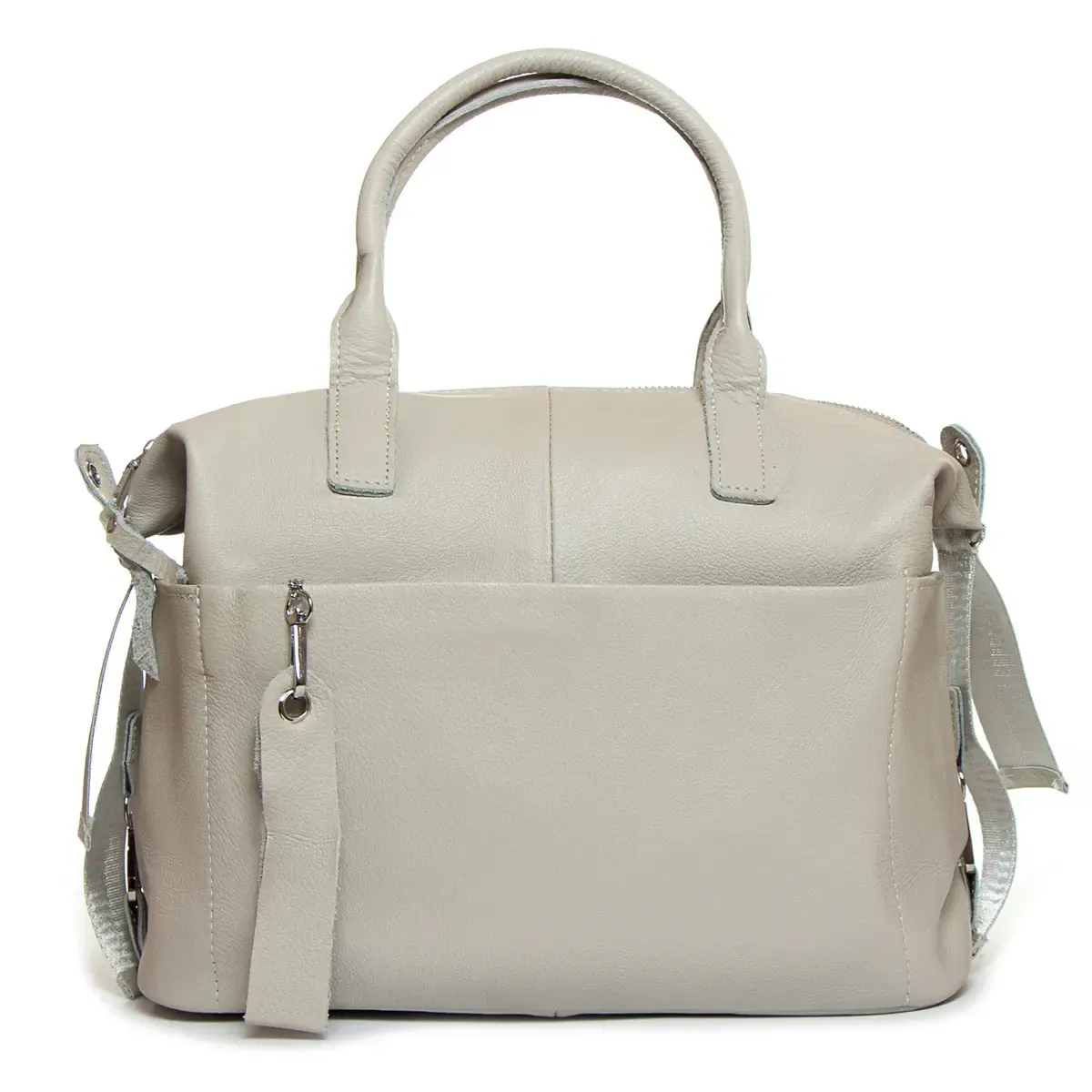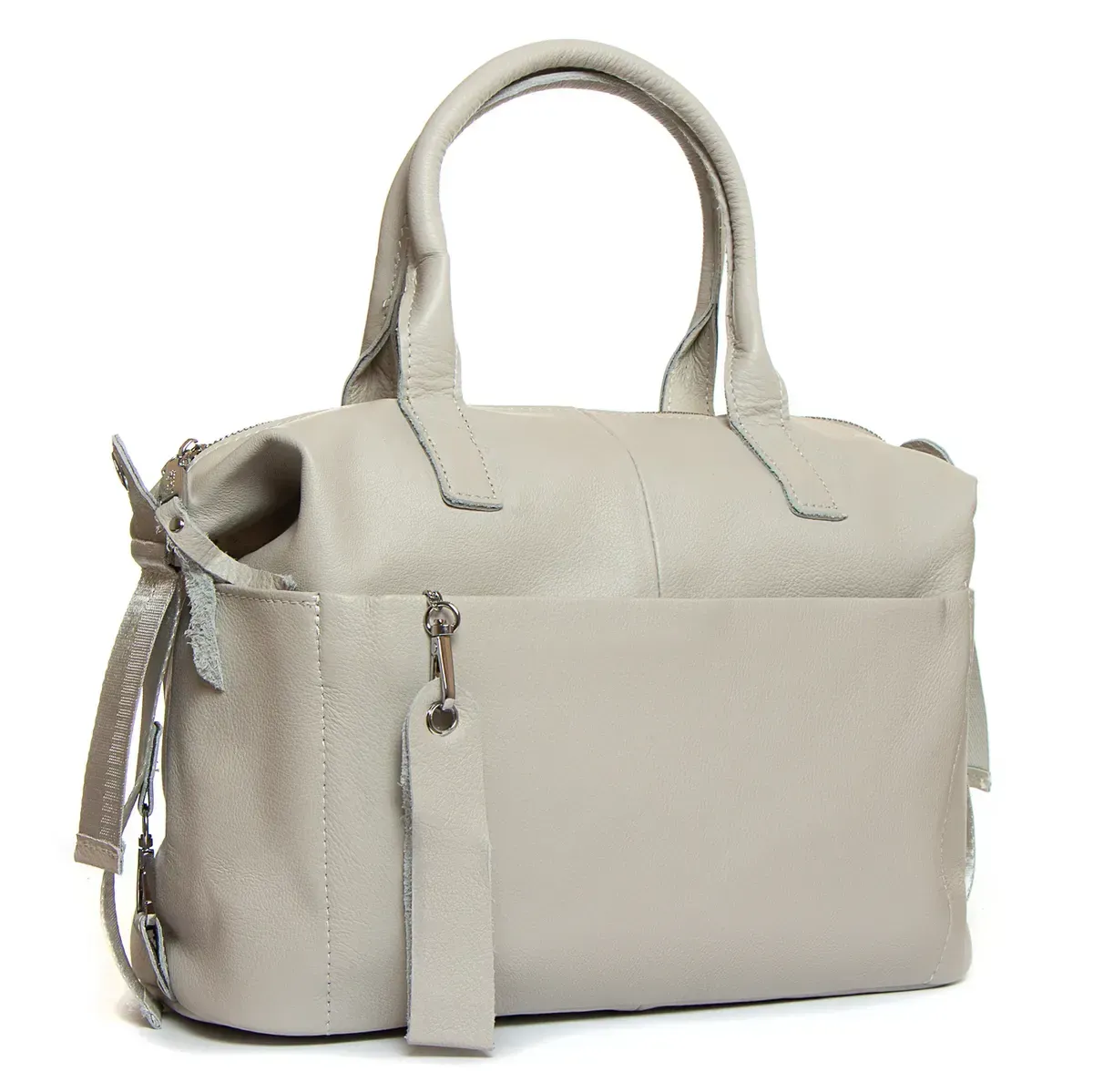 Жіноча шкіряна сумка Alex Rai. Виготовлена з натуральної м'якої шкіри. Закривається на блискавку. Усередині знаходиться основне та додаткове відділення, розділене кишенею-перегородкою на блискавці, бічна відкрита кишеня та кишеня на блискавці. Зовні сумки, на фасаді та на звороті розташовані кишені на блискавці. На торцях сумки є невеликі відкриті кишені. Жорстке дно.