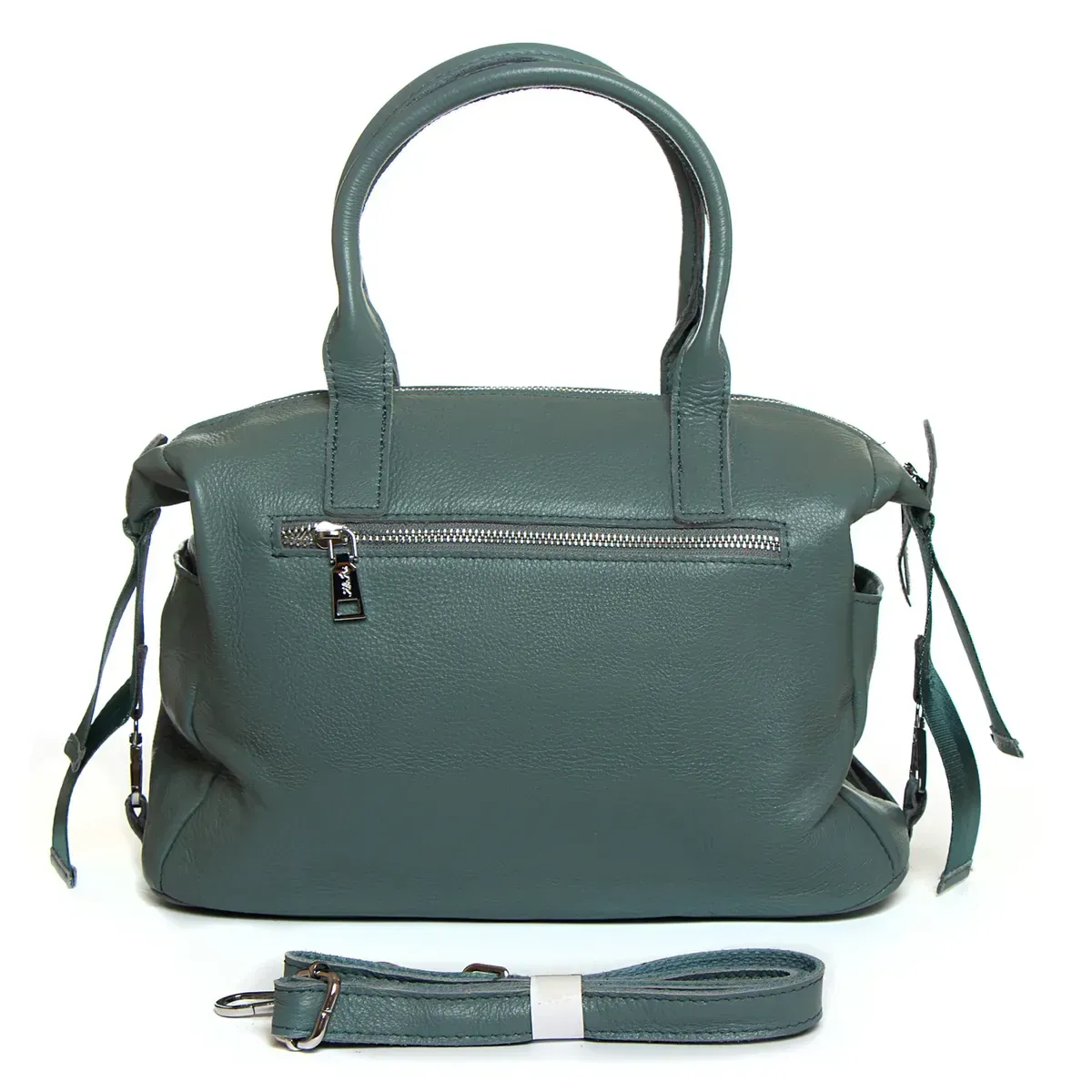 Жіноча шкіряна сумка Alex Rai. Виготовлена з натуральної м'якої шкіри. Закривається на блискавку. Усередині знаходиться основне та додаткове відділення, розділене кишенею-перегородкою на блискавці, бічна відкрита кишеня та кишеня на блискавці. Зовні сумки, на фасаді та на звороті розташовані кишені на блискавці. На торцях сумки є невеликі відкриті кишені. Жорстке дно.
