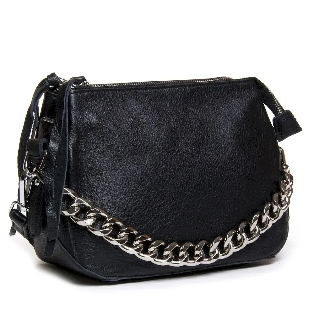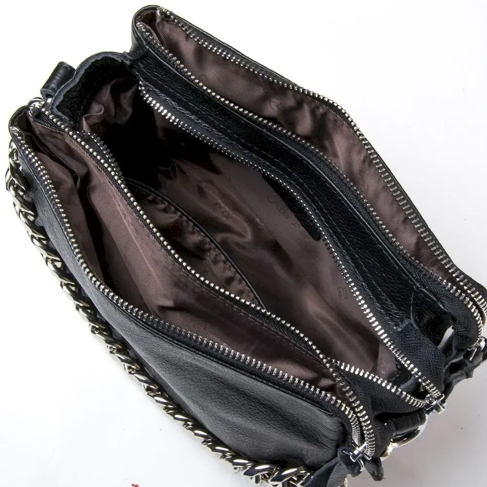 Жіноча сумочка Alex Rai. Виготовлена із натуральної м'якої шкіри. Три відділення закриваються на блискавку. Усередині центрального відділення знаходиться відкрита кишеня та бічна кишеня на блискавці. Зовні сумки на звороті є кишеню на блискавці. У комплекті регульований плечовий ремінь та знімна ручка-ланцюжок.
