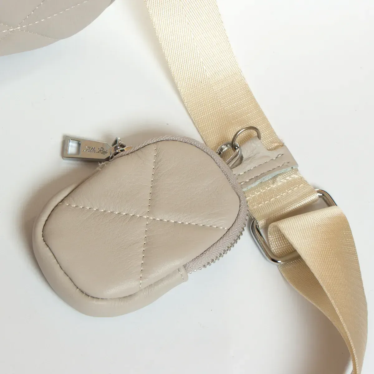 У комплекті регульований плечовий ремінь, широкий ремінь та знімна шкіряна ключниця.