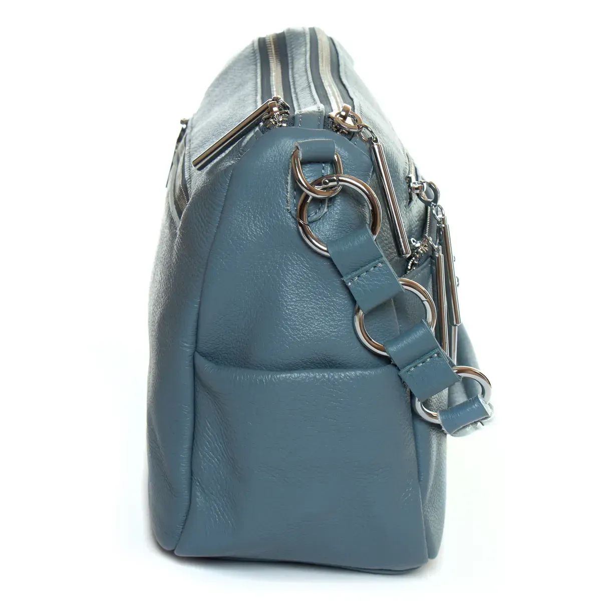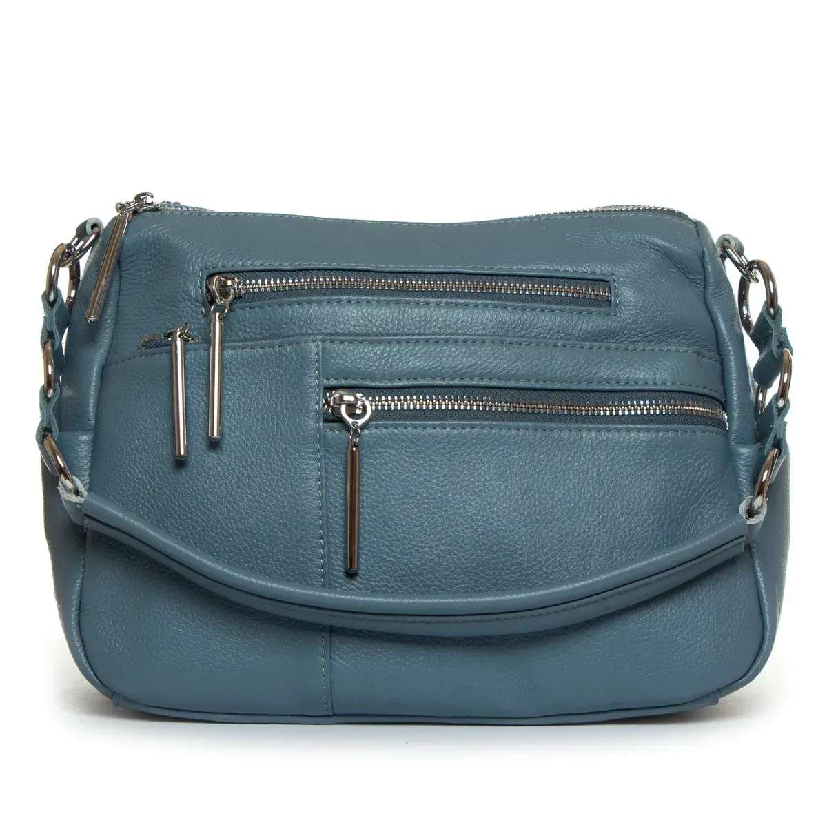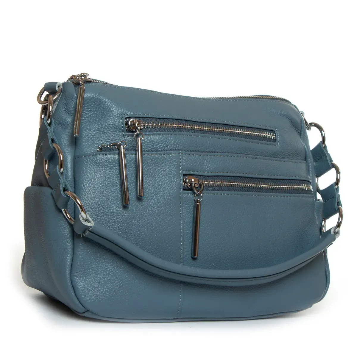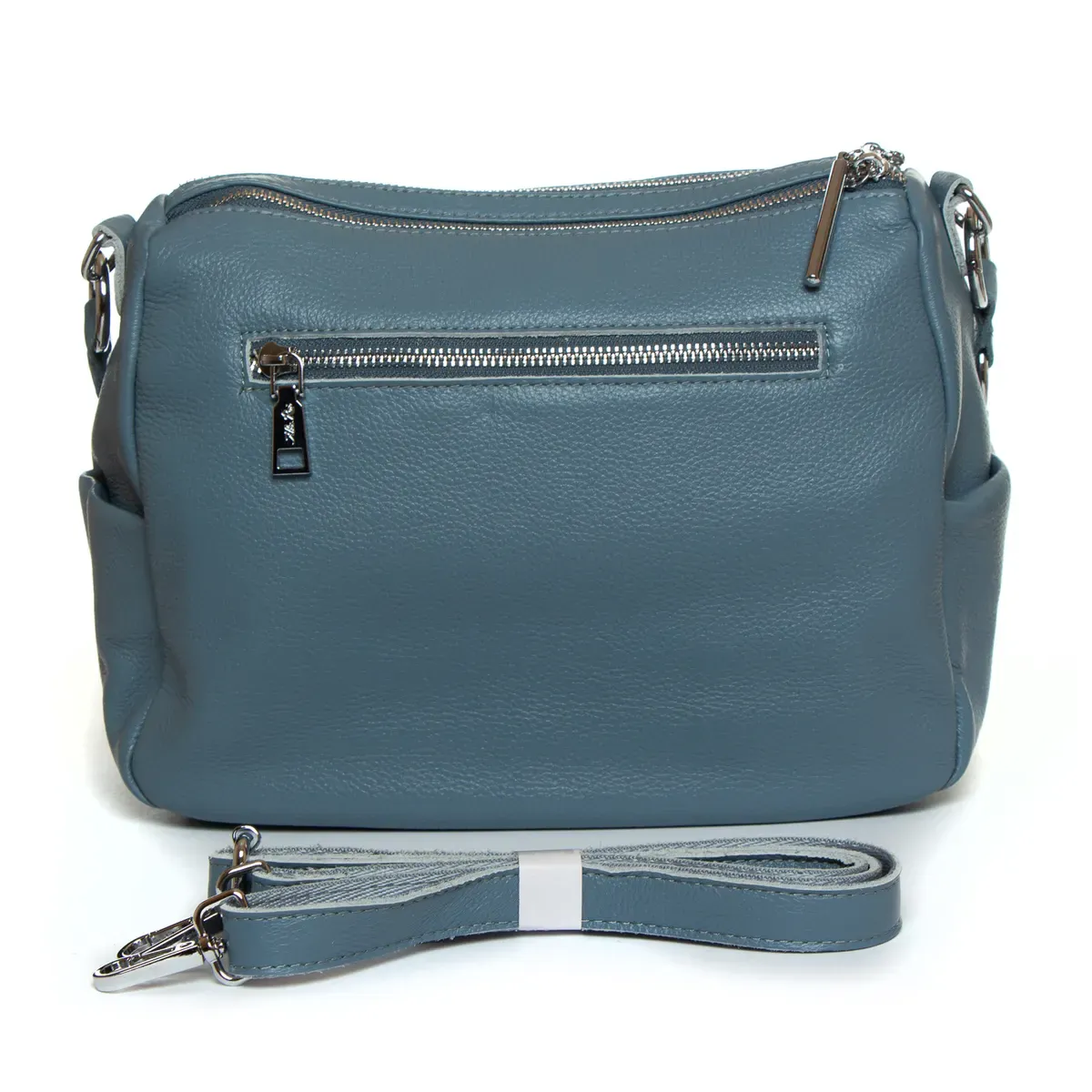 Жіноча шкіряна сумка Alex Rai. Виготовлена із натуральної м'якої шкіри. Два відділення, що закриваються на блискавці. Усередині відділень знаходяться бічна відкрита кишеня та кишеня на блискавці. Зовні сумки, на фасаді розташовані чотири кишені на блискавці та на фасаді одна кишеня. На торцях сумки є невеликі відкриті кишені. Ущільнене дно.