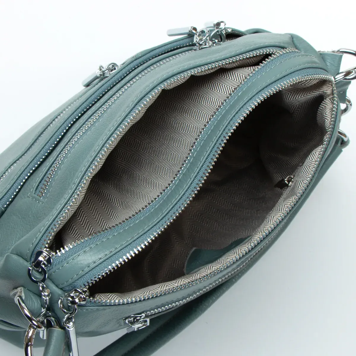 Жіноча шкіряна сумка Alex Rai. Виготовлена із натуральної м'якої шкіри. Два відділення, що закриваються на блискавці. Усередині відділень знаходяться бічна відкрита кишеня та кишеня на блискавці. Зовні сумки, на фасаді розташовані чотири кишені на блискавці та на фасаді одна кишеня. На торцях сумки є невеликі відкриті кишені. Ущільнене дно.